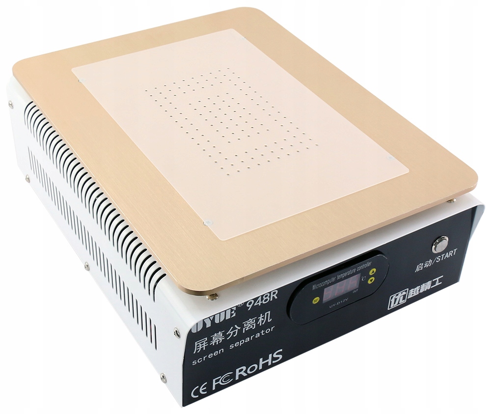 Podciśnieniowy podgrzewacz UYUE 948R+ o mocy 400W i płycie grzewczej 37x28,5cm służący do odseparowania szyb/ekranów dotykowych od wyświetlacza LCD w urządzeniach mobilnych tj telefony, smartfony i tablety.