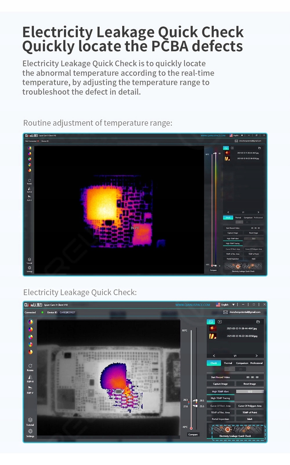 Qianli Super Cam X 3D to kamera termowizyjna na podczerwień zaprojektowana specjalnie do wykrywania gorących punktów termicznych na małych płytkach drukowanych.
