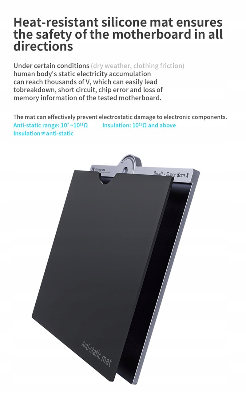 Urządzenia, które mają być kontrolowane, można umieścić na antystatycznej macie odpornej na ciepło umieszczonej na podstawie.