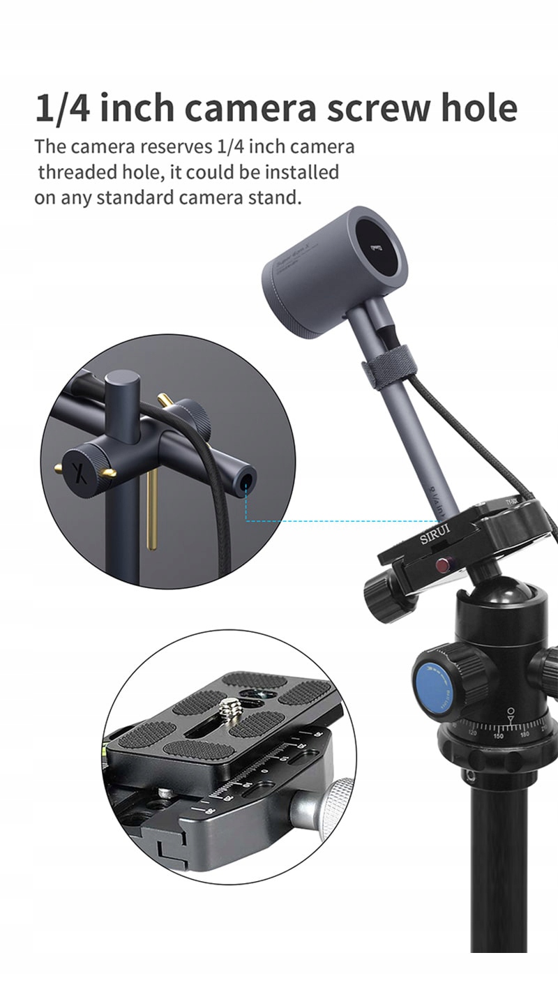 Samą kamerę można odłączyć i zamontować na zwykłym statywie (brak w zestawie), co umożliwia monitorowanie urządzeń również bez użycia podstawy.