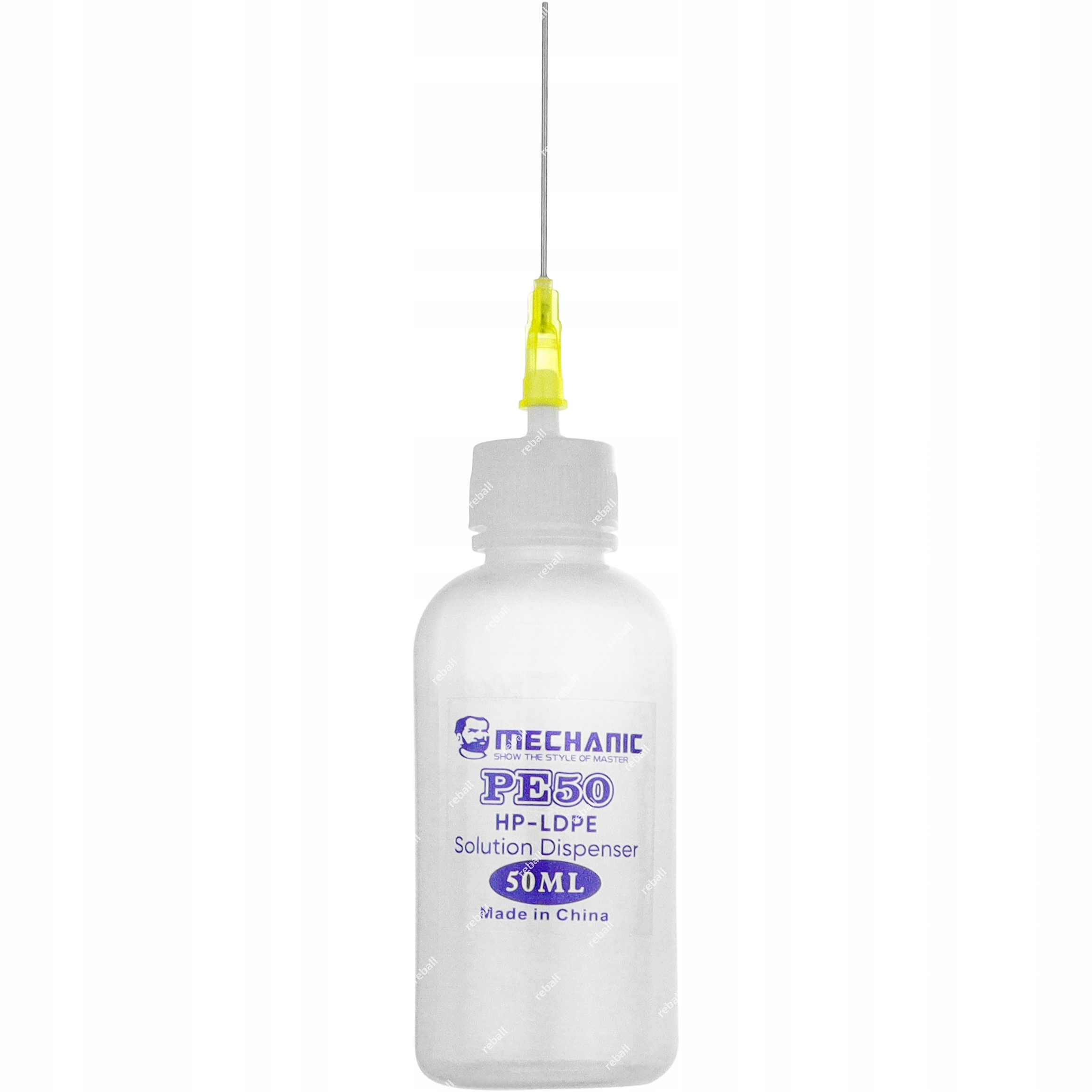 Butelka dozownicza Mechanic PE50 to pojemnik wykonany z wysokiej jakości polietylenu o niskiej gęstości (LDPE), który jest elastyczny i odporny na uszkodzenia mechaniczne oraz działanie wielu substancji chemicznych, takich jak kwasy, etanol, aceton.
