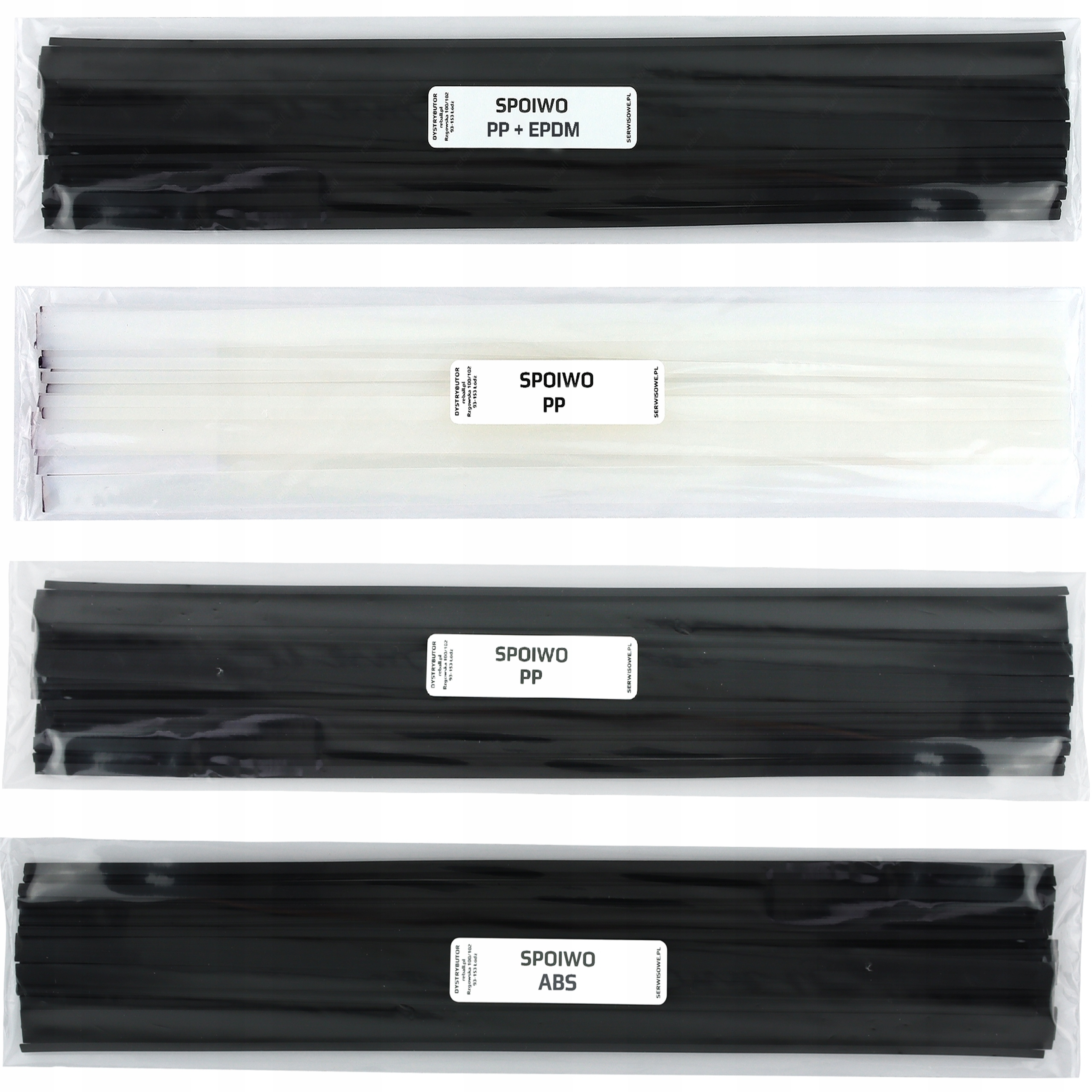 Zestaw spoiw przeznaczony jest do spawania zderzaków, błotników i nadkoli, obudów i osłon silnika, kołpaków, listew bocznych, nakładek progów, lamp, zderzaków, wszelkich elastycznych elementów desek rozdzielczych oraz innych elementów wnętrza samochodu, obudów lusterek, osłon silników, owiewek skuterów, quadów jak również wszelkich plastikowych obudów sprzętu gospodarstwa domowego itp.