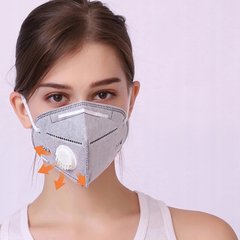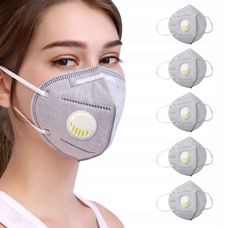 Wielorazowa oddychająca maska na twarz (usta i nos) KN95 klasy FFP2 wspomaga ochronę przed bakteriami i wirusami, smogiem, alergenami.