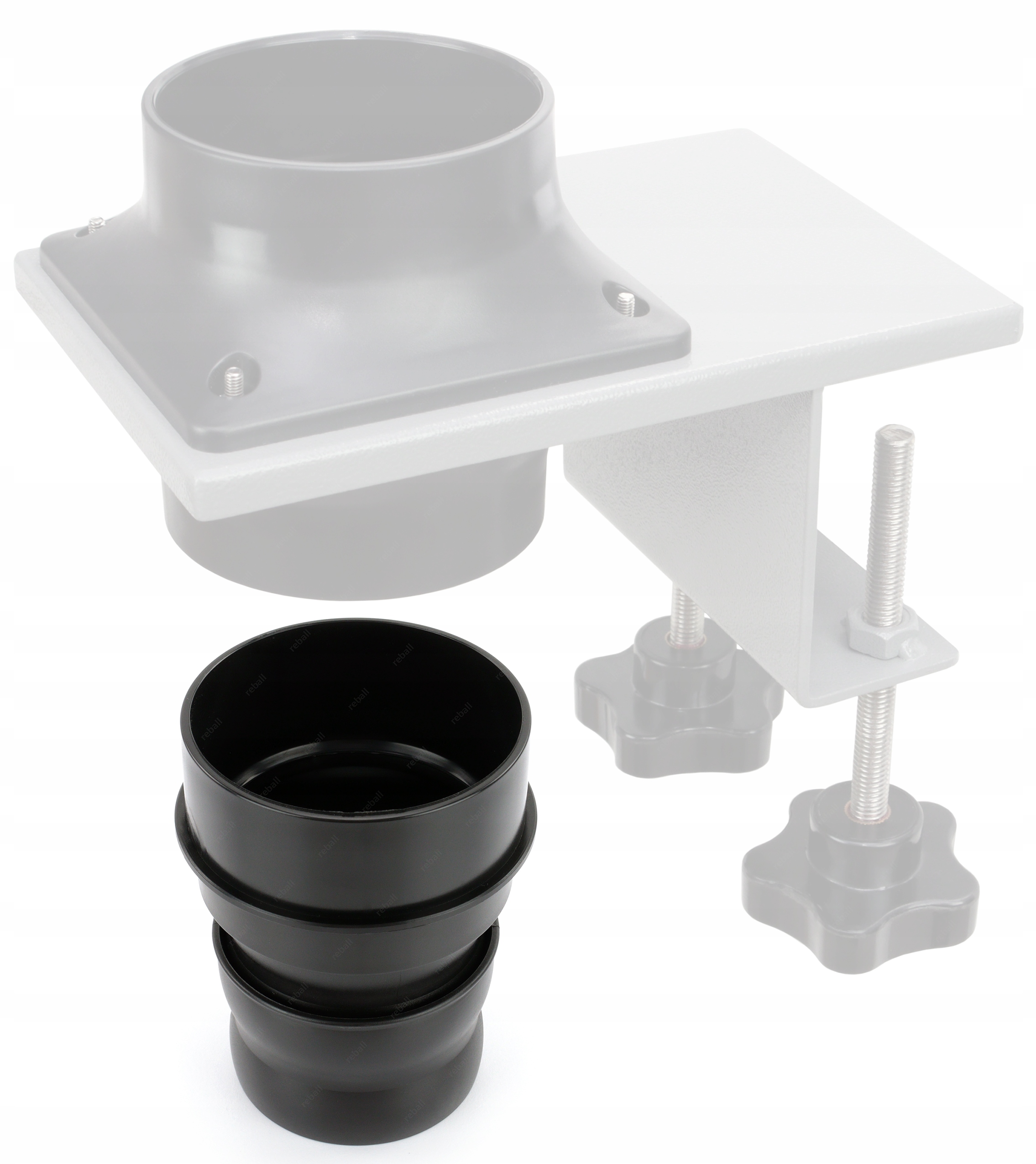 Adapter montujemy w dolnej części uchwytu do stołu i zakładamy na niego dowolną rurę elastyczną którą łączymy z pochłaniaczem.