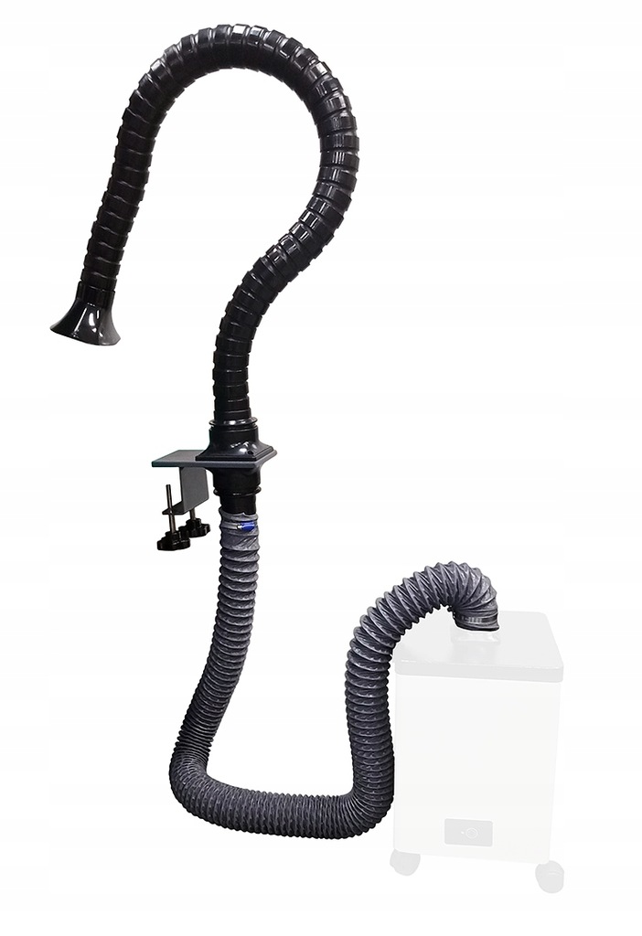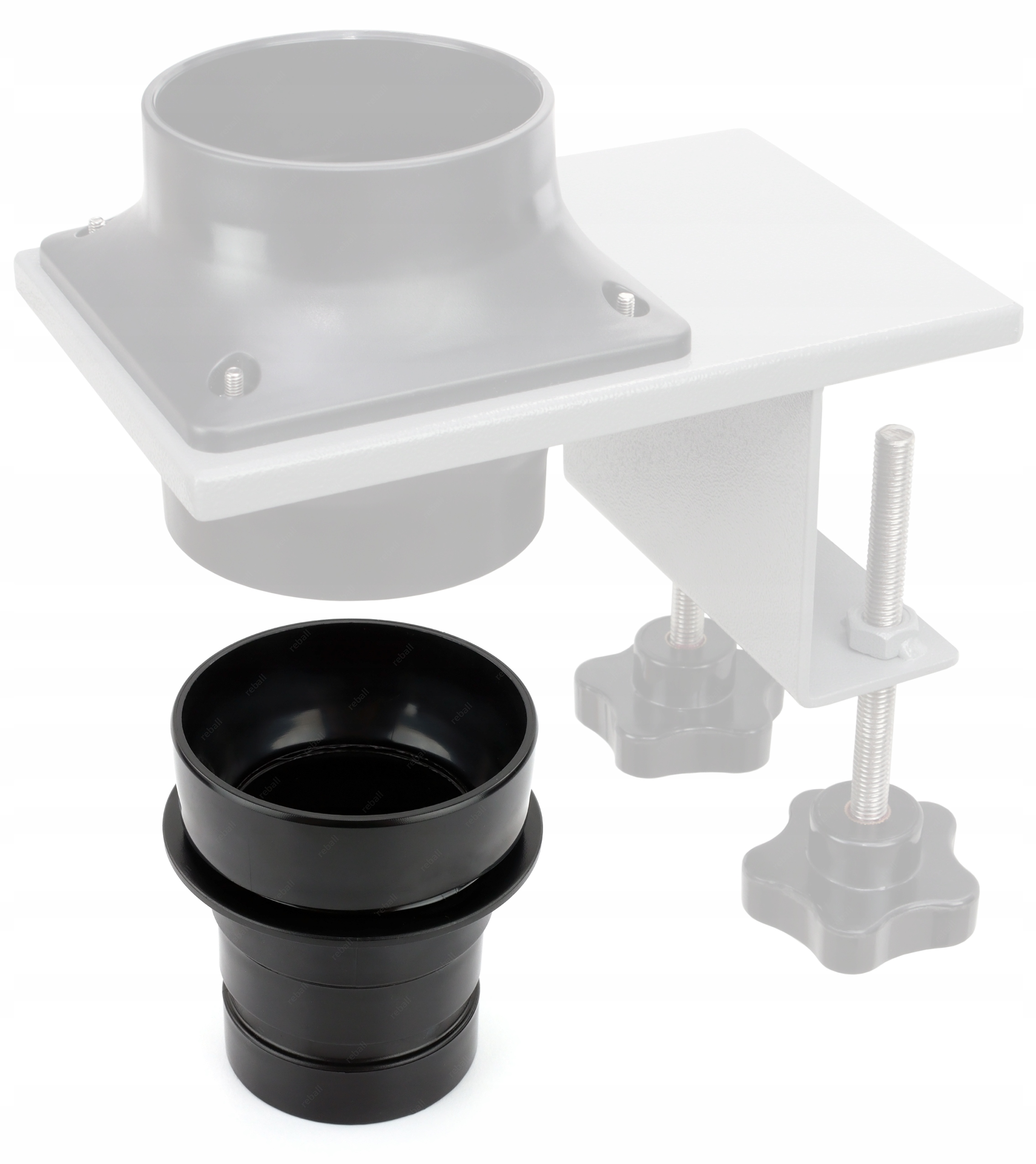 Adapter montujemy w dolnej części uchwytu do stołu i zakładamy na niego dowolną rurę elastyczną którą łączymy z pochłaniaczem.