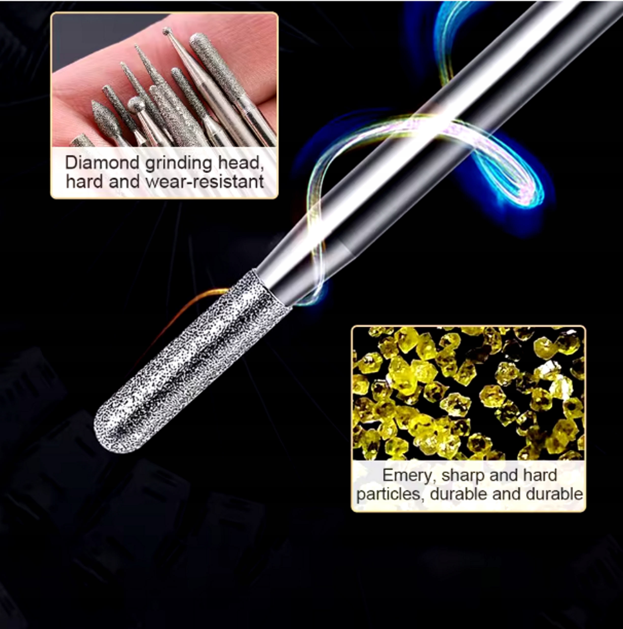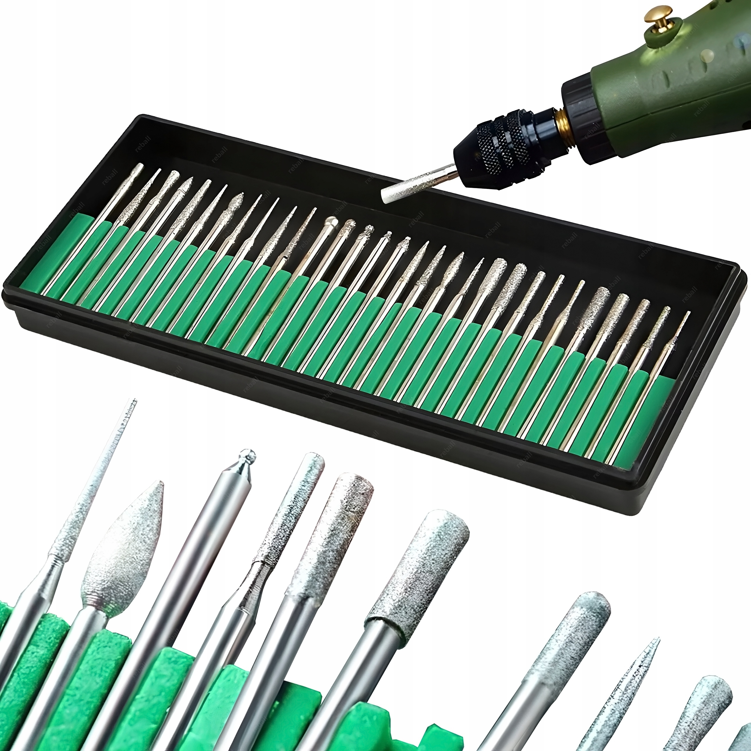 Zestaw składający się z 30 precyzyjnych końcówek do szlifierki.