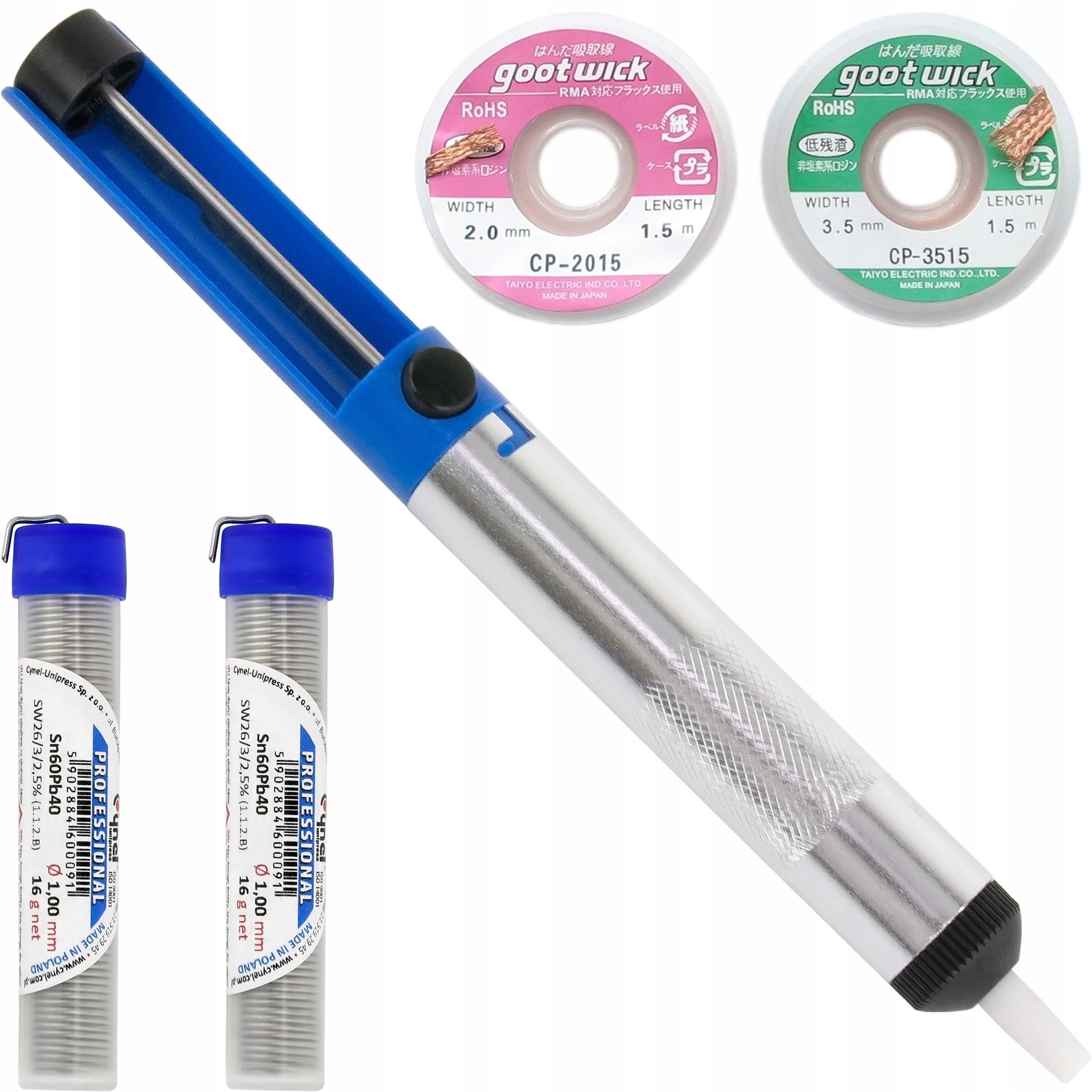 Zestaw zawiera niezbędne akcesoria potrzebne przy lutowaniu elementów.