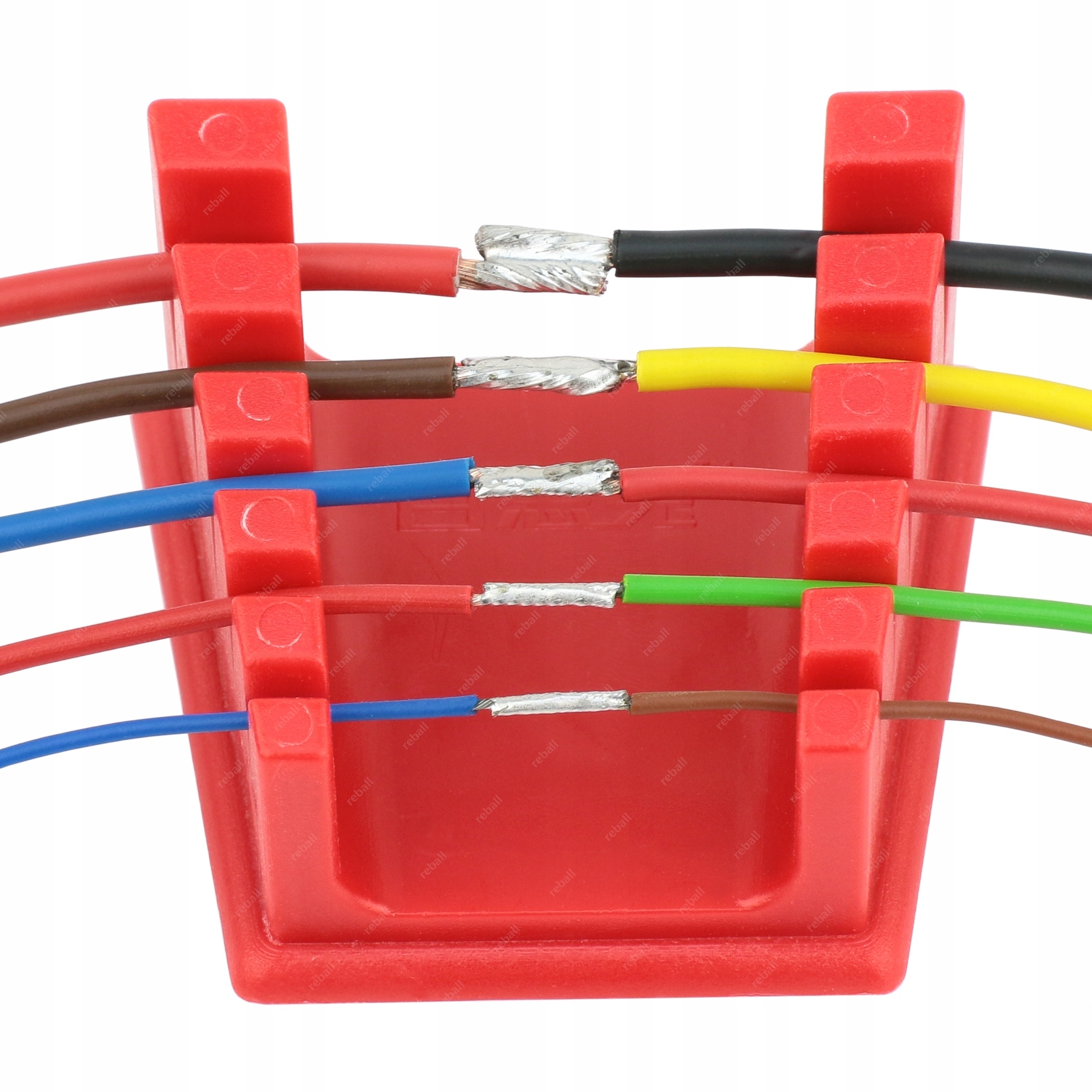 Szczeliny o różnej szerokości umożliwiają montaż przewodów o średnicy od 1mm do 4,5mm.
