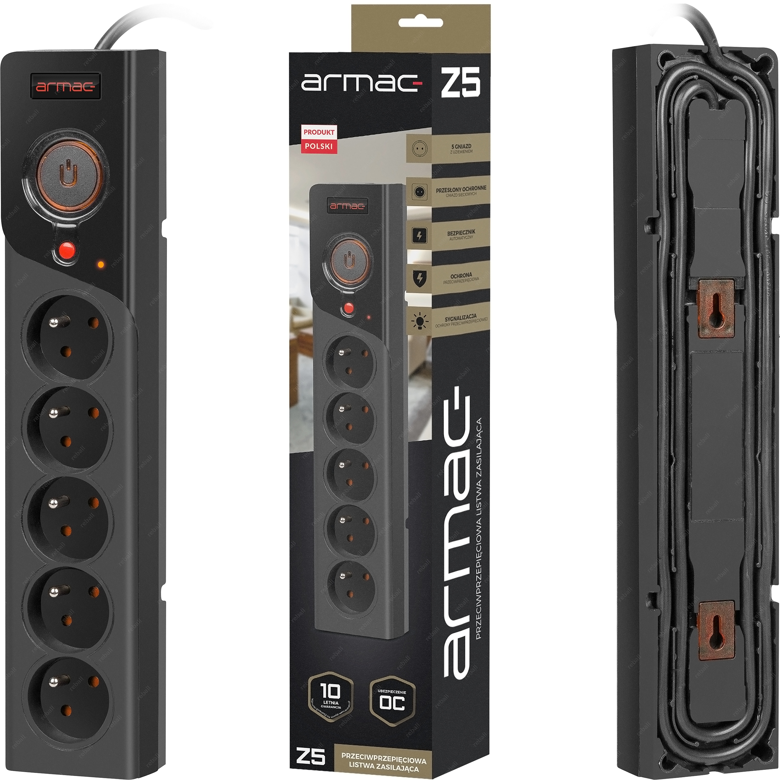 PRZEDŁUŻACZ LISTWA ZASILAJĄCA ANTYPRZEPIĘCIOWA 5 GNIAZD ARCON R5 2500W 1,5m