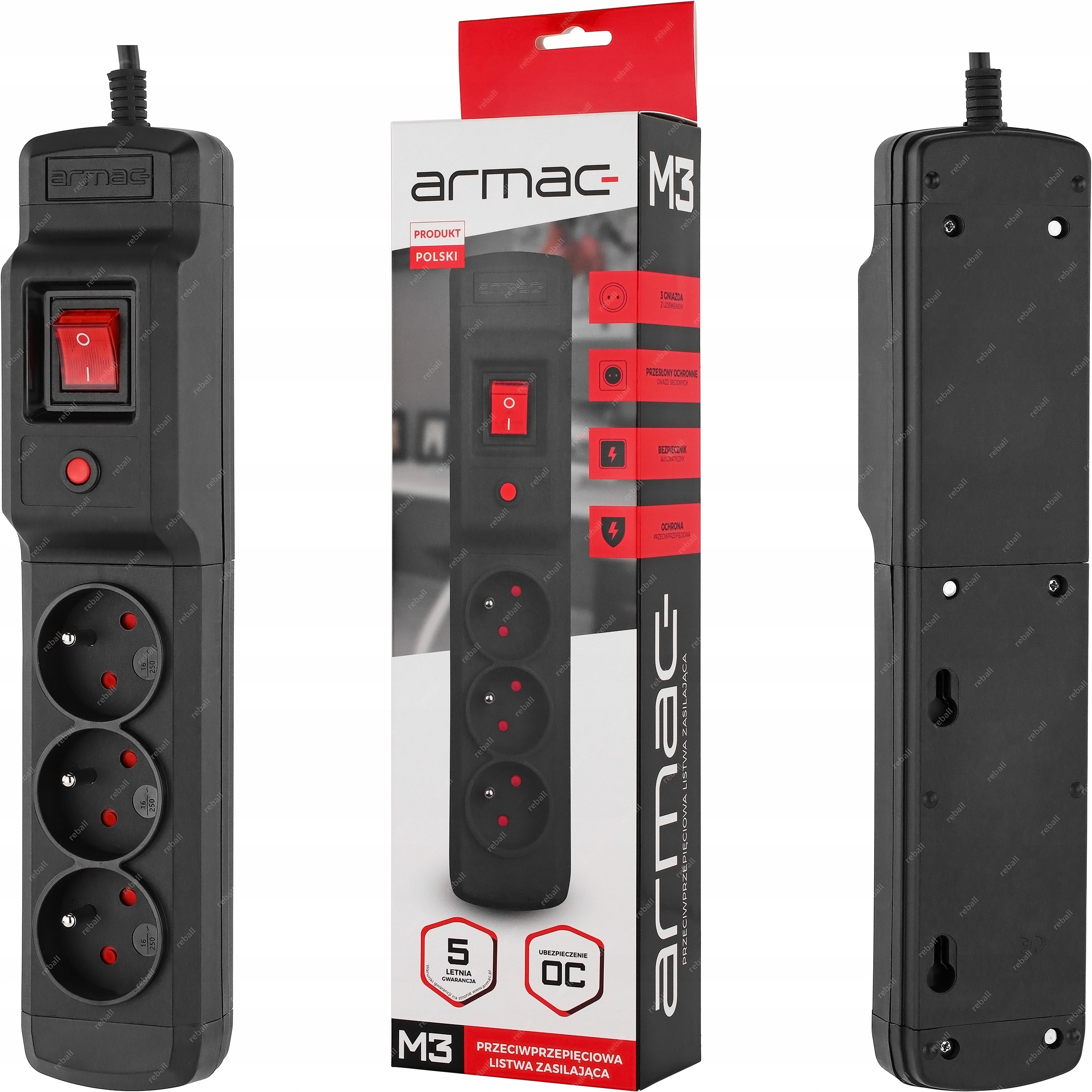 PRZEDŁUŻACZ LISTWA ZASILAJĄCA ANTYPRZEPIĘCIOWA 3 GNIAZDA ARCON M3 1,5m