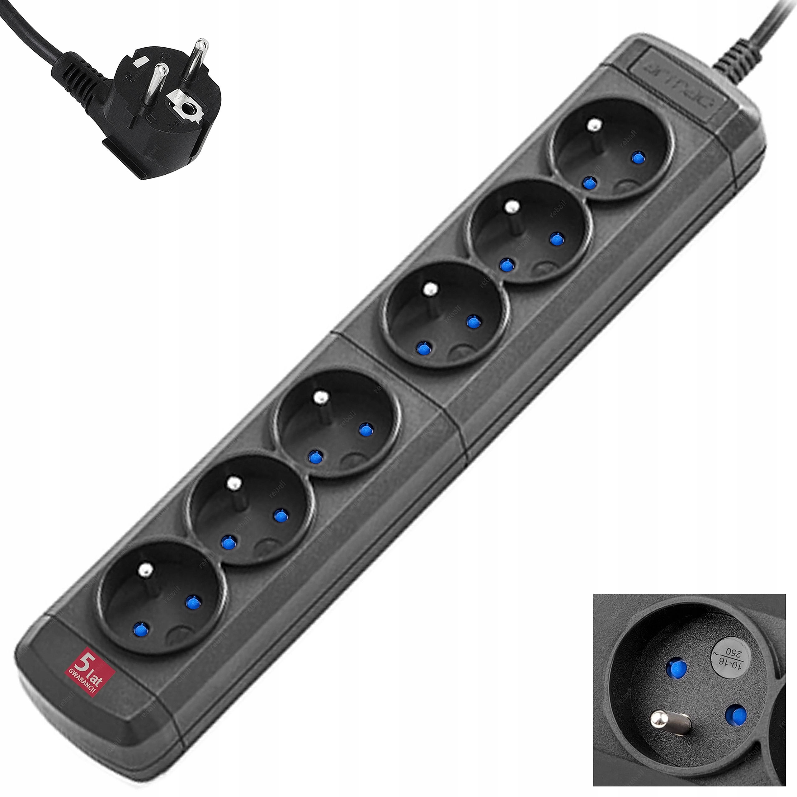 PRZEDŁUŻACZ LISTWA ZASILAJĄCA ARC6-B 1,5m 6 GNIAZD 10A POLSKA JAKOŚĆ 2500W