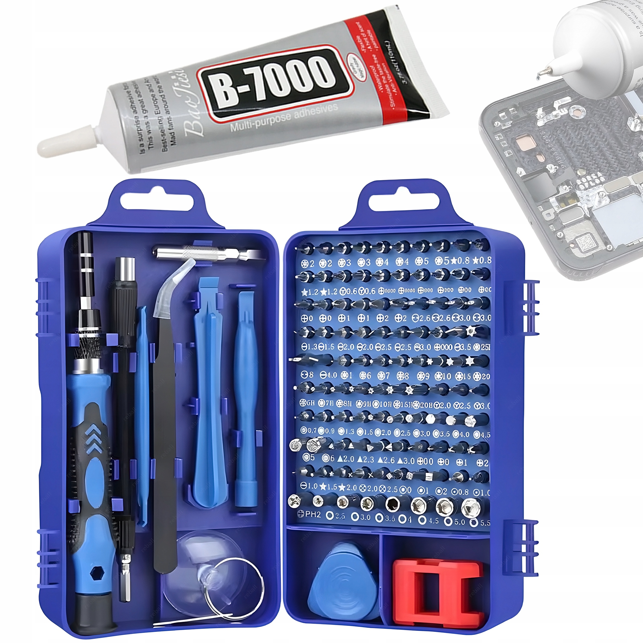 RT0117 to zestaw 115 precyzyjnych narzędzi, bitów i otwieraków z lekkim aluminiowym uchwytem przeznaczony do precyzyjnych napraw serwisowych telefonów i smartfonów w tym produktów marki Apple oraz wszelkiej elektroniki konsumenckiej.