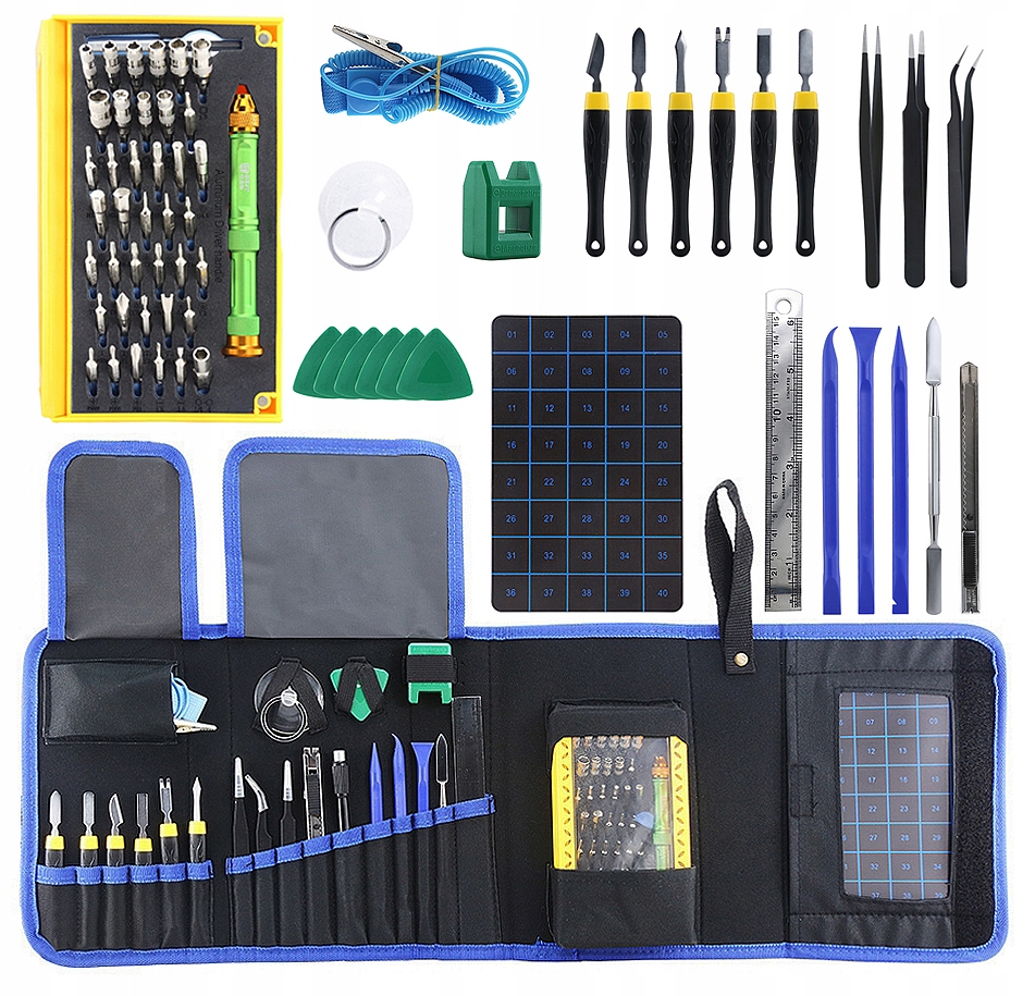 ZESTAW WKRĘTAKI BITY OTWIERAKI PĘSETY NAPRAWA TELEFONU LAPTOPA BST-118 ETUI