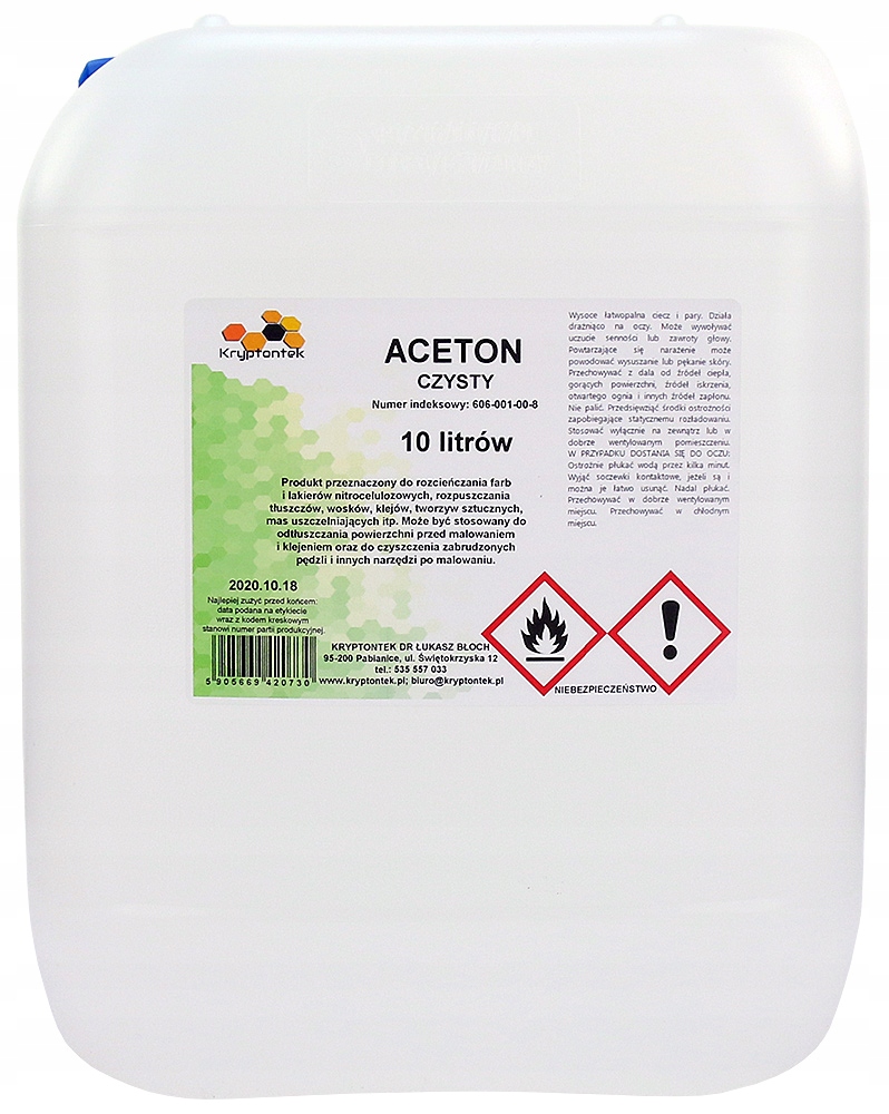 ACETON TECHNICZNY CZYSTY ODTŁUSZCZACZ ZMYWACZ ROZPUSZCZALNIK FARB KLEJU 10L