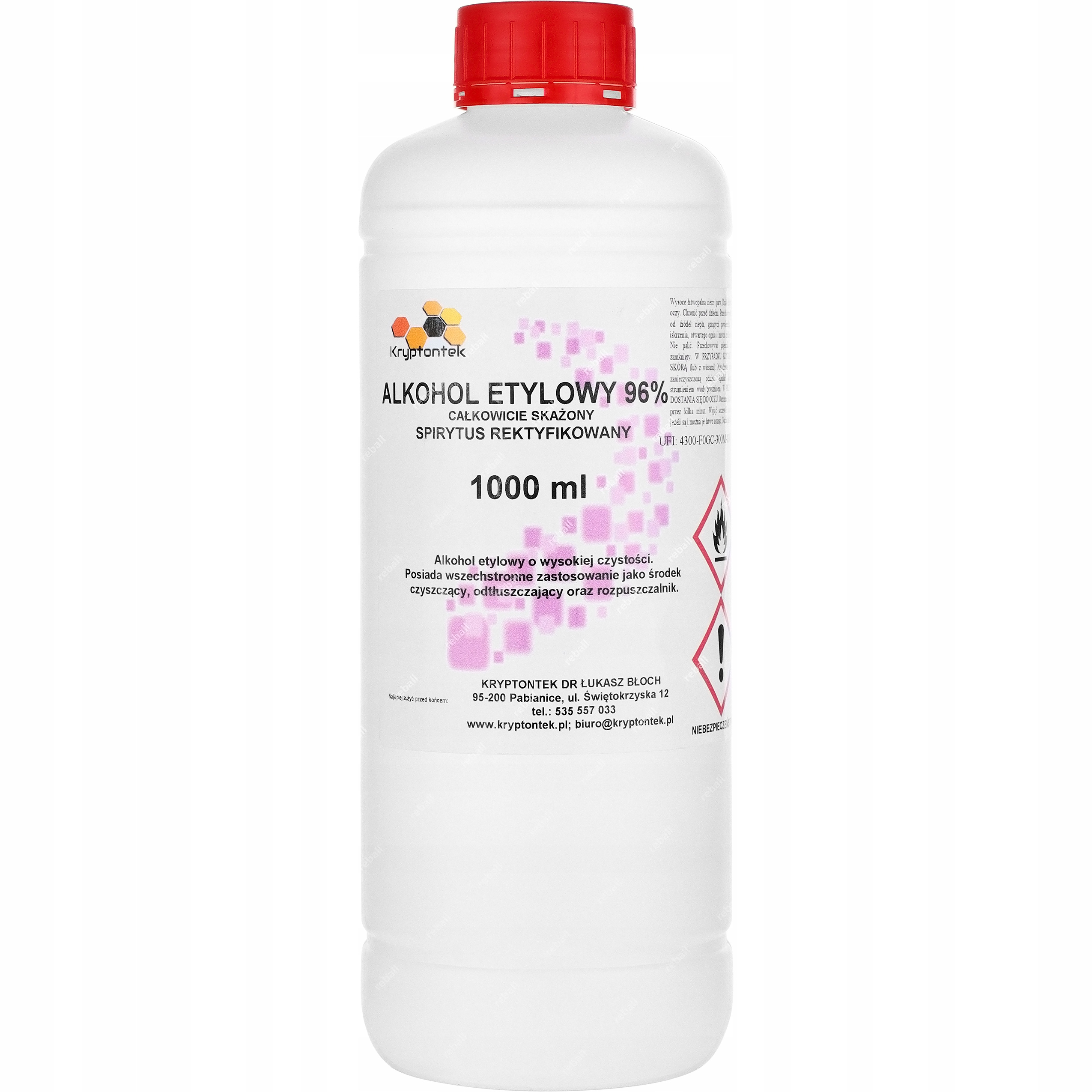 ALKOHOL ETYLOWY 96% ETANOL SPIRYTUS REKTYFIKOWANY CAŁKOWICIE SKAŻONY 1L