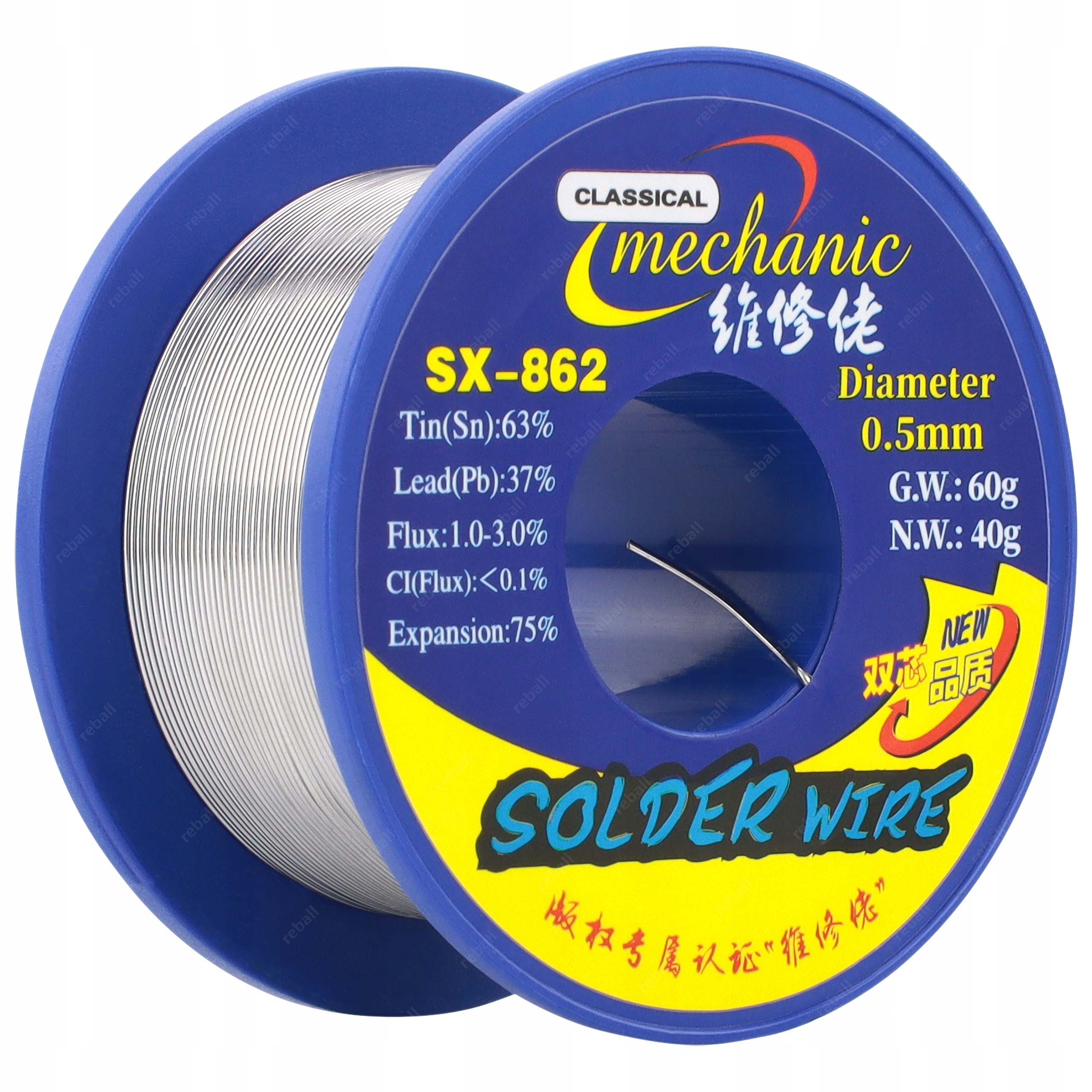 CYNA DO LUTOWANIA OŁOWIOWA Z TOPNIKIEM Sn63Pb37 0.5mm 40g MECHANIC SX-862