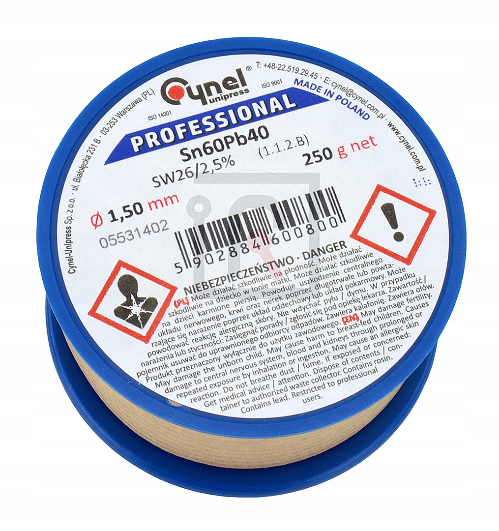 CYNA Z TOPNIKIEM KALAFONIĄ OŁOWIOWA POLSKA JAKOŚĆ CYNEL 1,5mm 250g 0.25kg