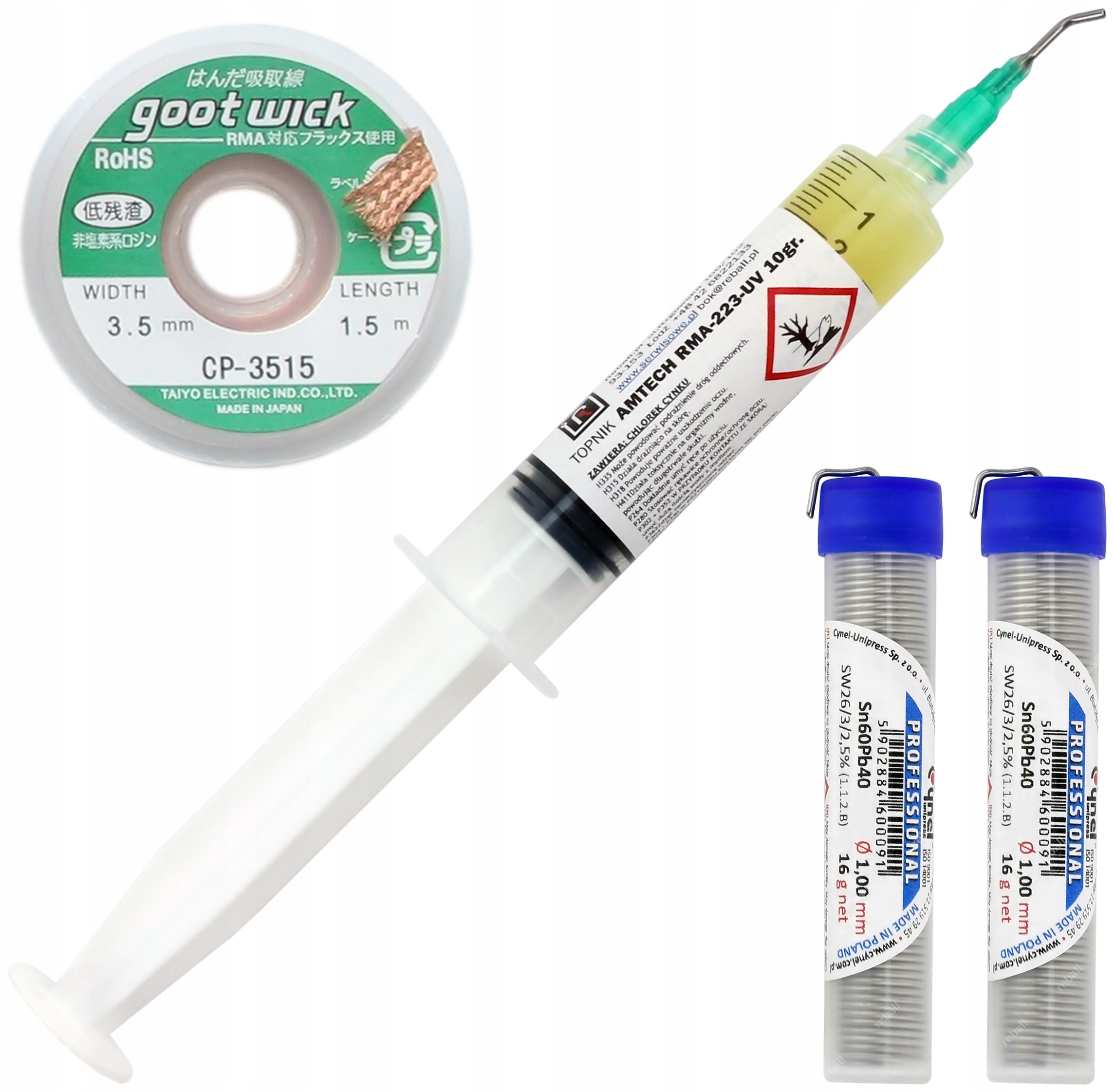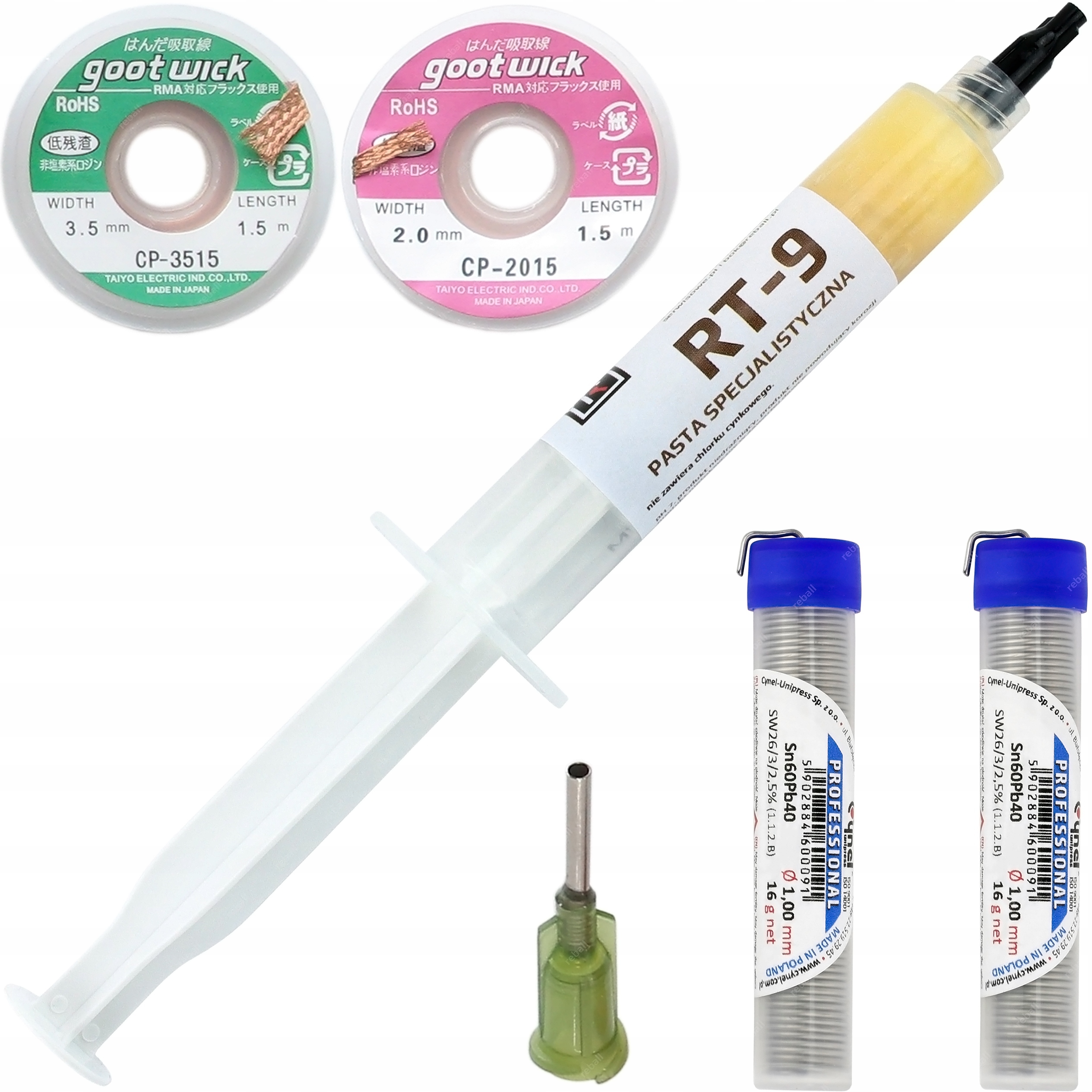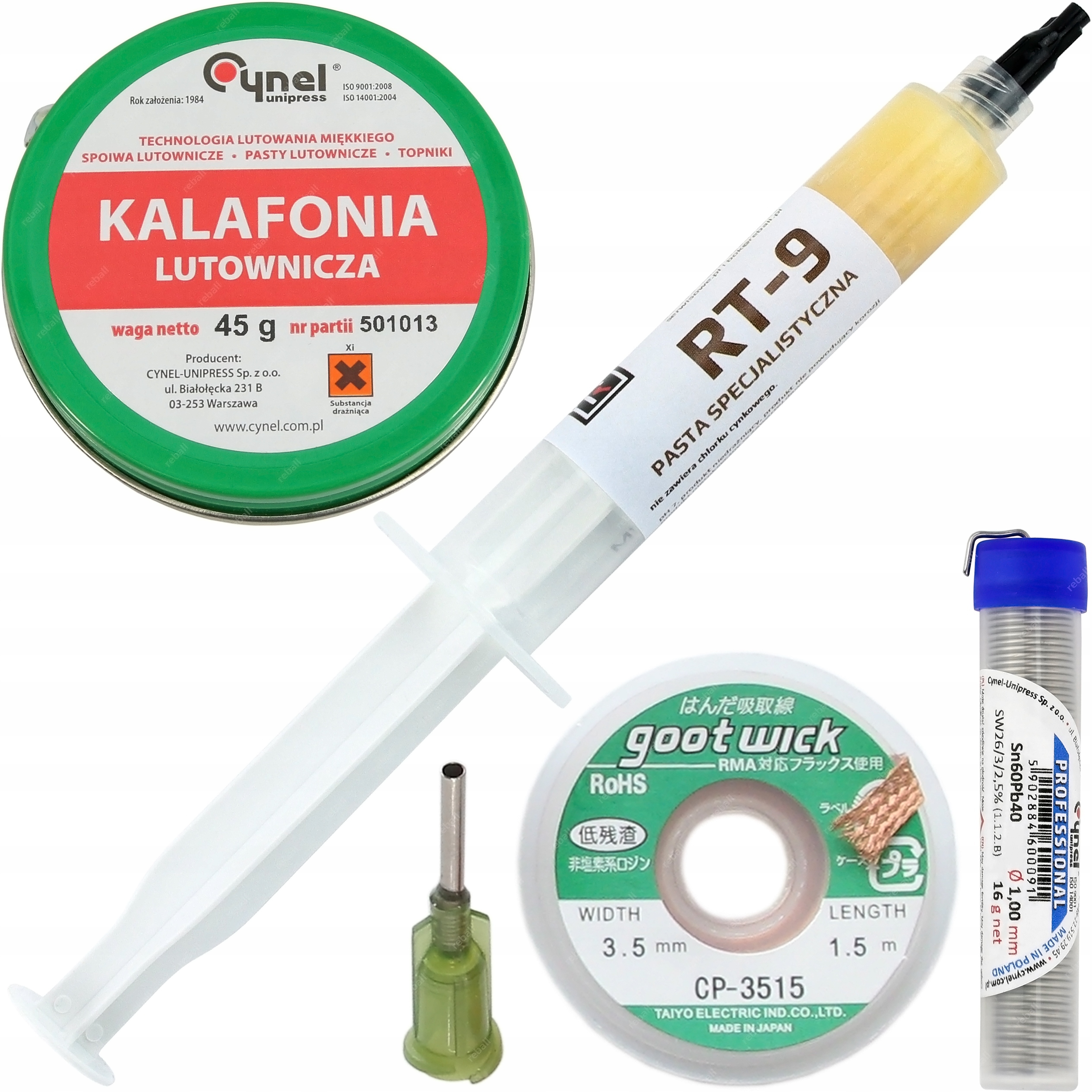 AKCESORIA LUTOWNICZE CHEMIA DO LUTOWANIA RT-9 CYNA PLECIONKA KALAFONIA IGŁA
