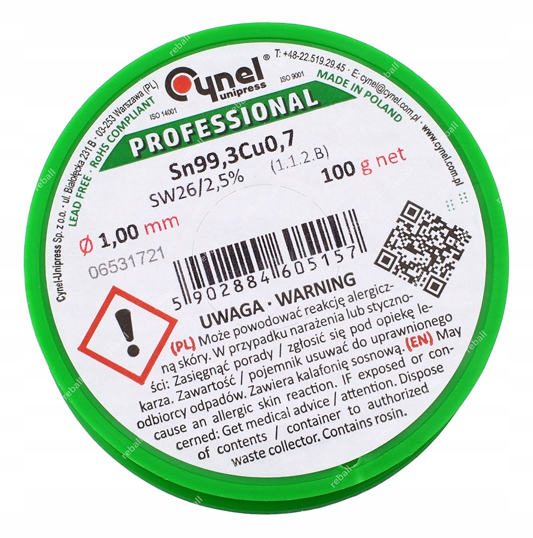 PROFESJONALNA CYNA DO LUTOWANIA REBALL TOPNIK + FLUX Sn63Pb37 1.0 mm 30g