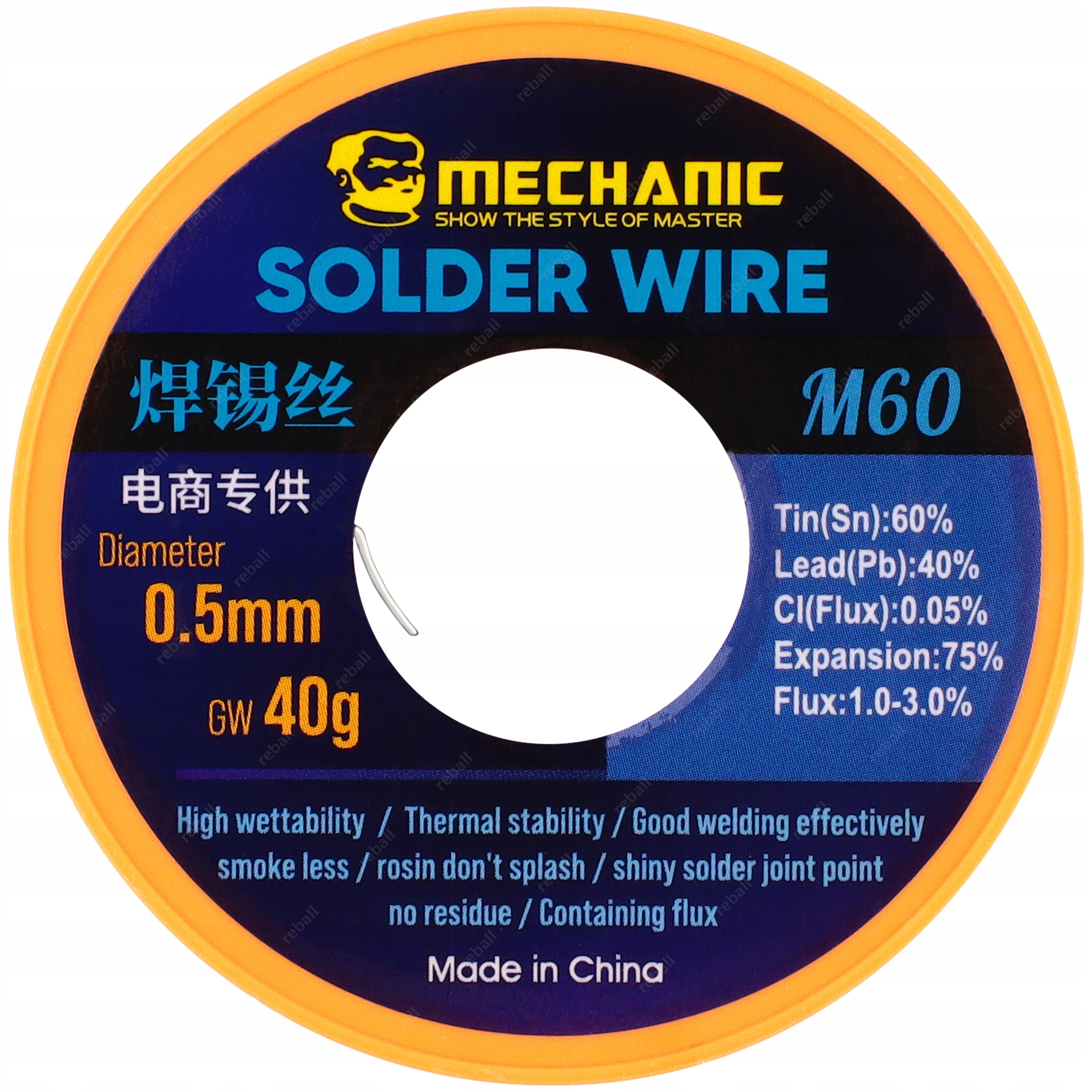 Spoiwo lutownicze M60 ma zastosowanie głównie w przemyśle elektronicznym, do produkcji standardowych urządzeń i podzespołów elektronicznych, elektrotechnice oraz do lutowania elementów z pokryciami cynowymi, cynowo-ołowiowymi, kadmowymi, cynkowymi i srebrnymi.