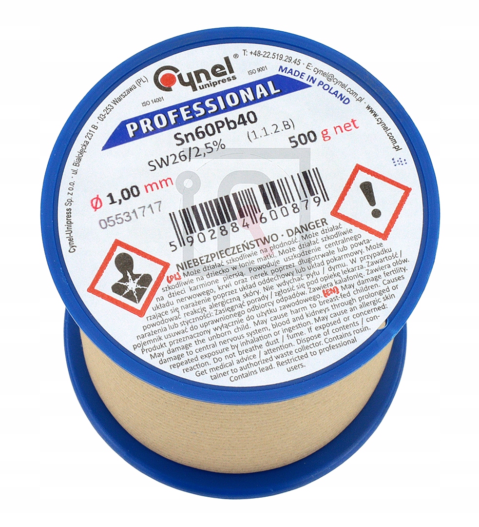 Stop ołowiowy S-Sn60Pb40 wyprodukowany w pierwszym wytopie cyny i ołowiu zgodnie z normą PN EN 29453:2000, w ciągłym procesie odlewania bez dostępu powietrza, następnie wyciskany, co zapewnia eliminację występowania tlenków.