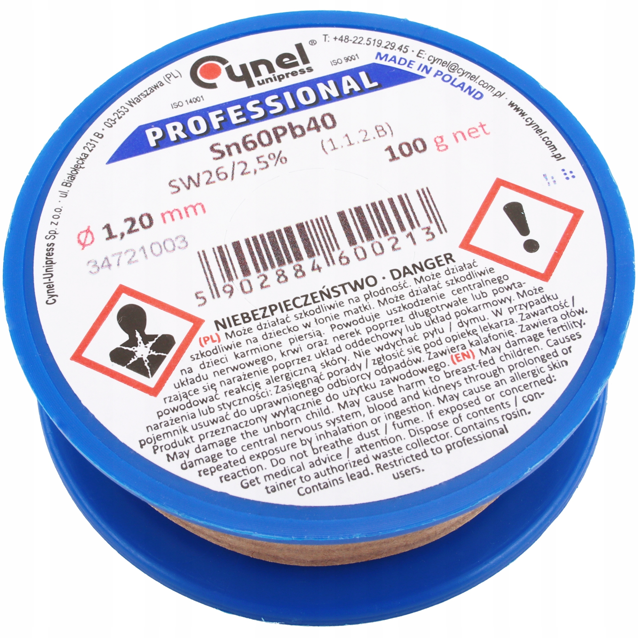 CYNA Z TOPNIKIEM KALAFONIĄ CYNEL 1.5mm 100g 0.1kg ORYGINALNY PRODUKT POLSKI