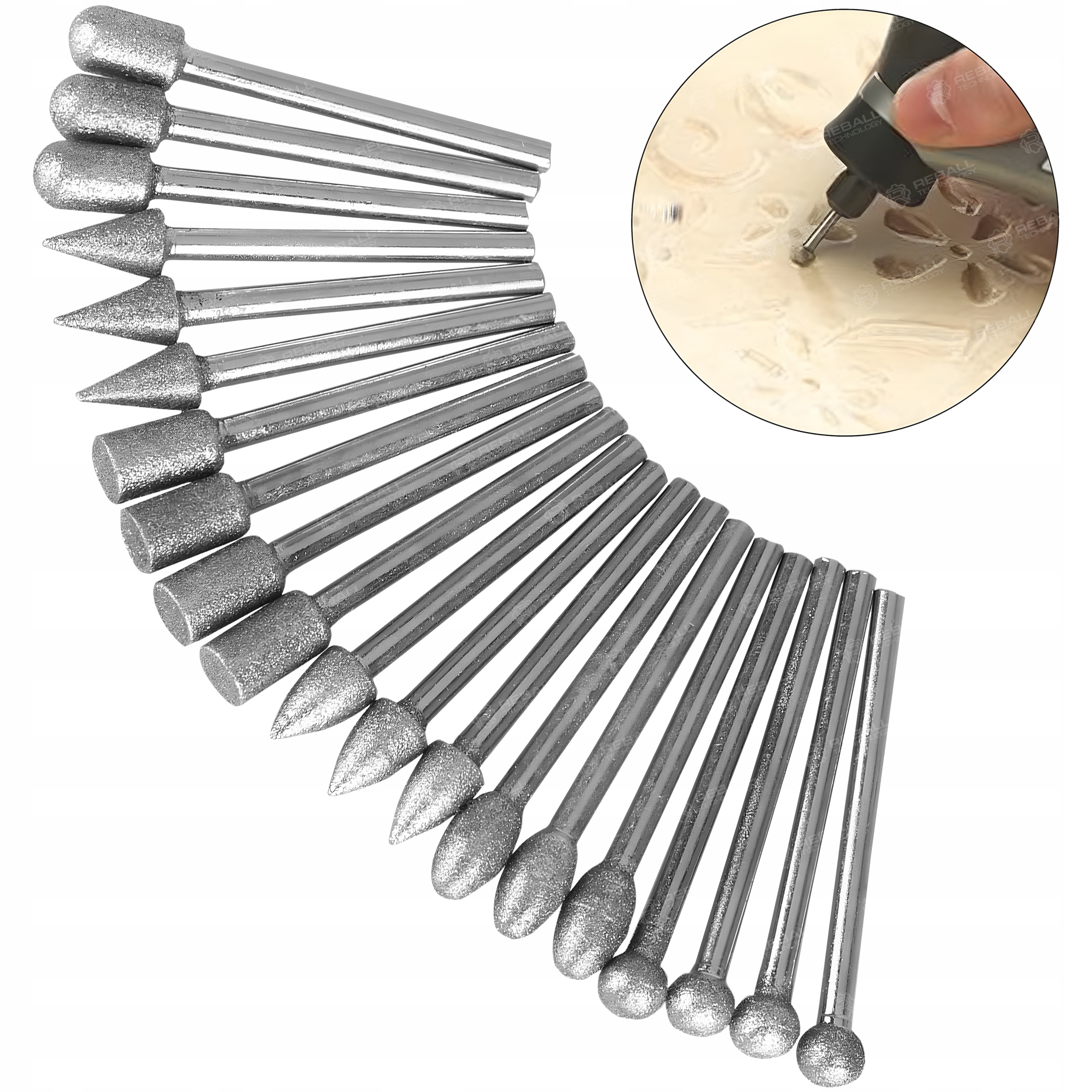 ZESTAW AKCESORIA DO MINI SZLIFIERKI KOŃCÓWKI DIAMENTOWE FREZY ETUI 20szt