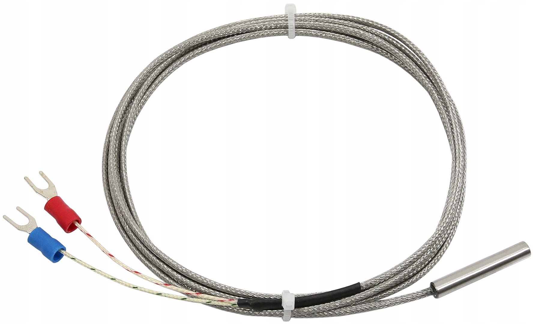 Czujnik temperatury typu K umieszczony wewnątrz osłony ze stali nierdzewnej z przewodem o długości 1,5m.