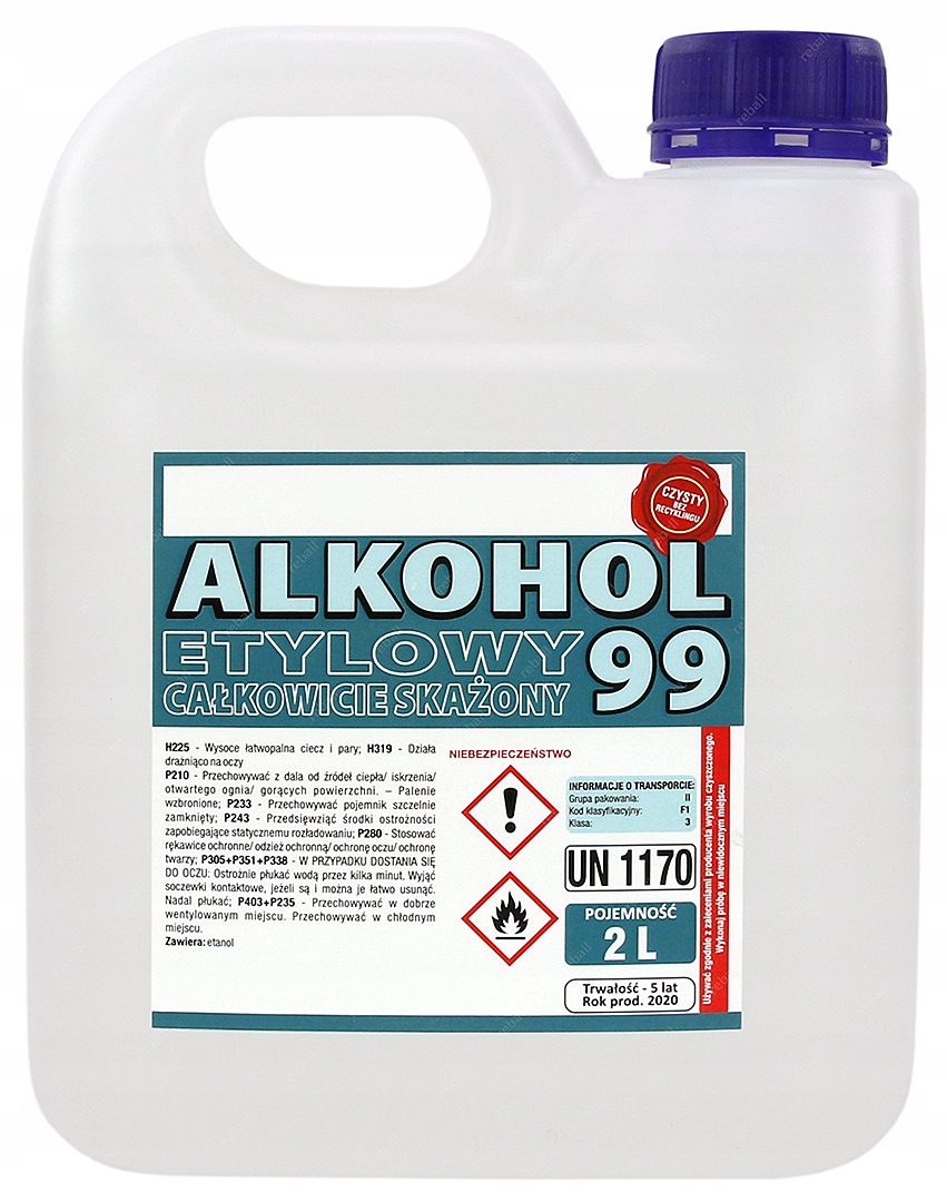 ALKOHOL ETYLOWY 99,9% ETANOL SPIRYTUS ODWODNIONY CAŁKOWICIE SKAŻONY 2L