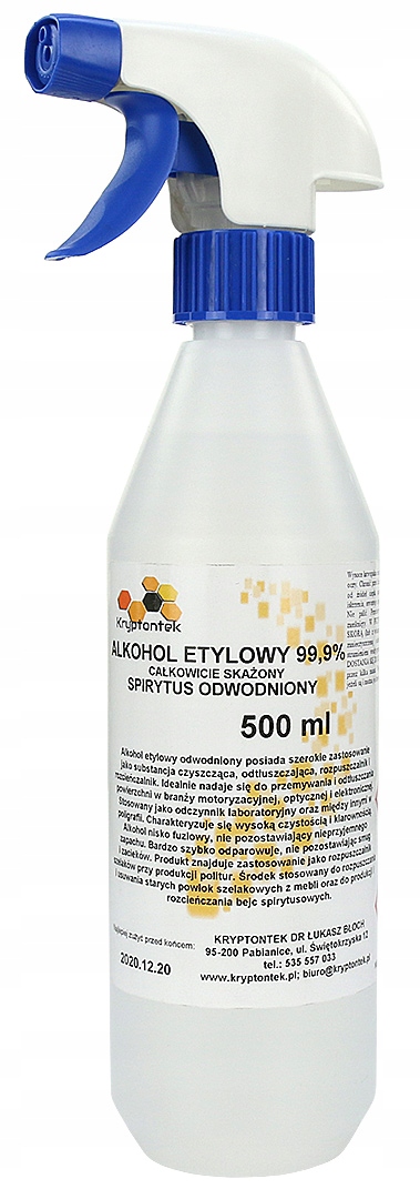ALKOHOL ETYLOWY 99,9% ETANOL SPIRYTUS ODWODNIONY CAŁKOWICIE SKAŻONY 500ml