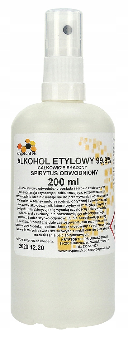 ALKOHOL ETYLOWY 99,9% ETANOL SPIRYTUS ODWODNIONY CAŁKOWICIE SKAŻONY 100ml