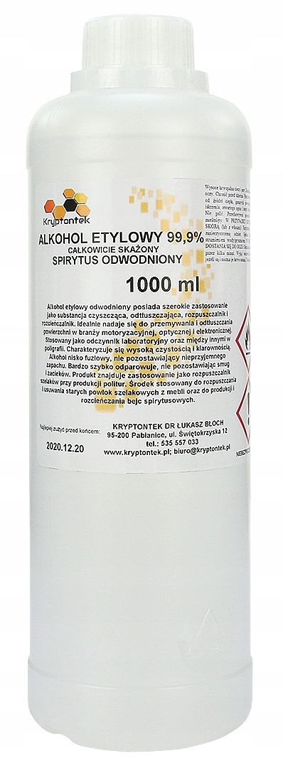 ETANOL 99,9% SPIRYTUS REKTYFIKOWANY ODWODNIONY 1L CZYSZCZENIE DEZYNFEKCJA