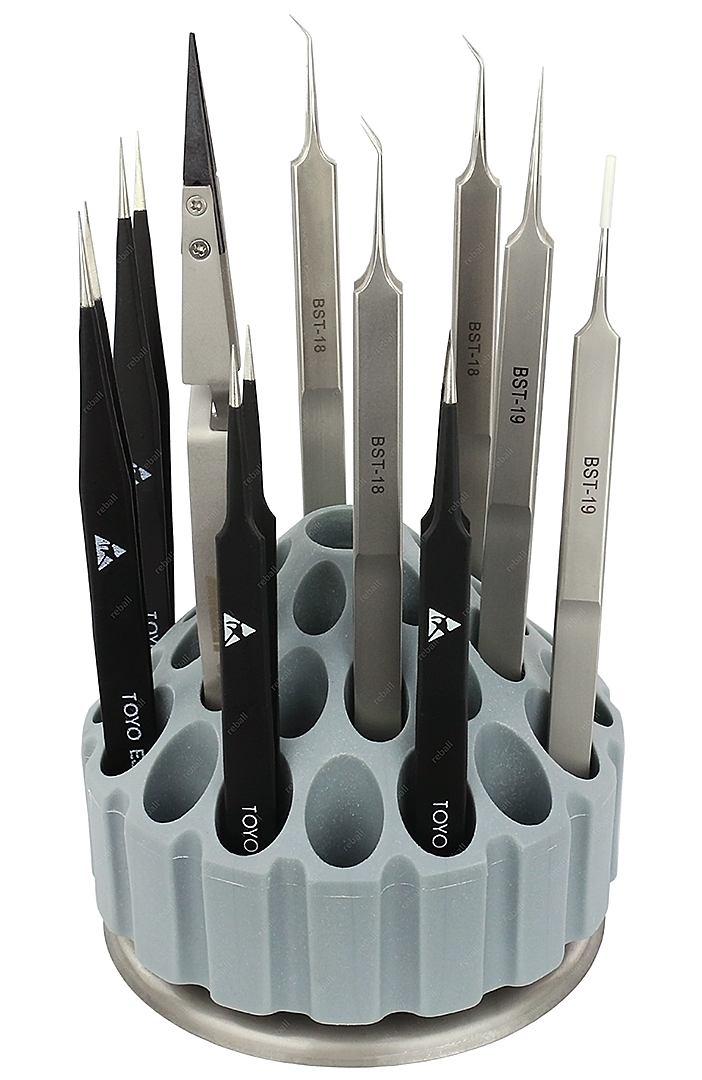 Przedstawione na zdjęciu pincety służą celom demonstracyjnym i poza stojakiem nie wchodzą w skład zestawu.