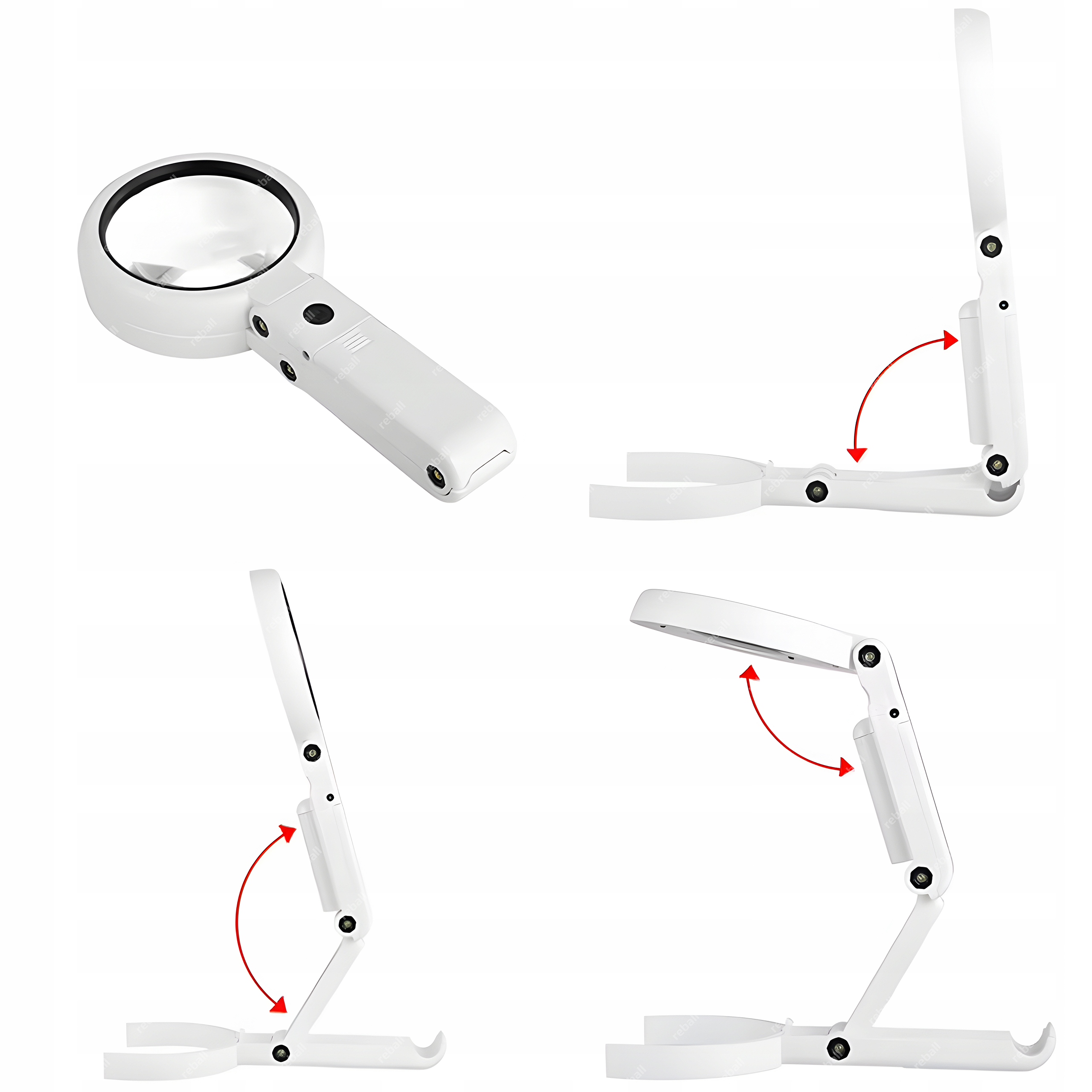 Lupę można również szybko złożyć z formy lupy stojącej do formy lupy ręcznej.