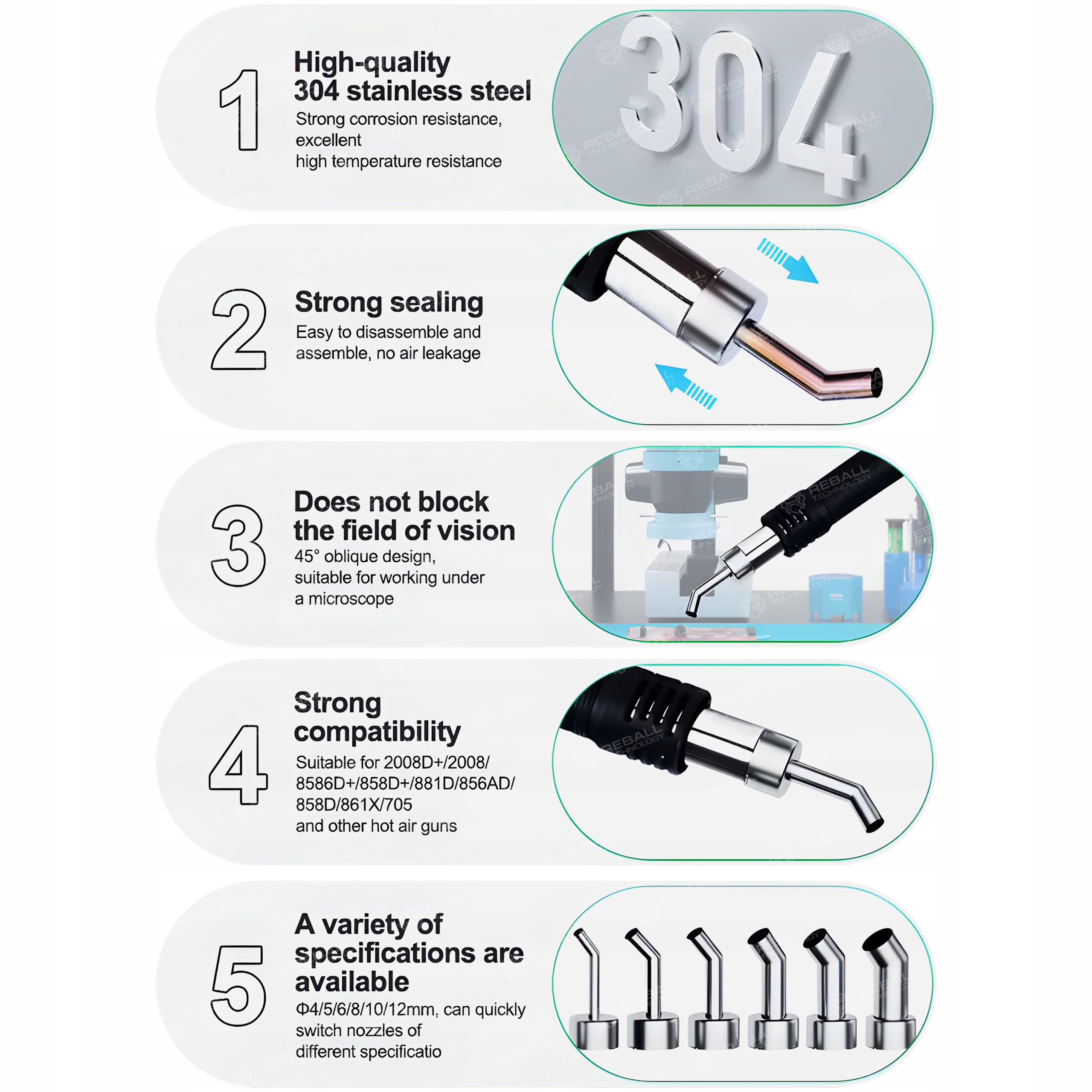 ✅ Zestaw 6 ukośnych dysz uniwersalnych do stacji hot-air.