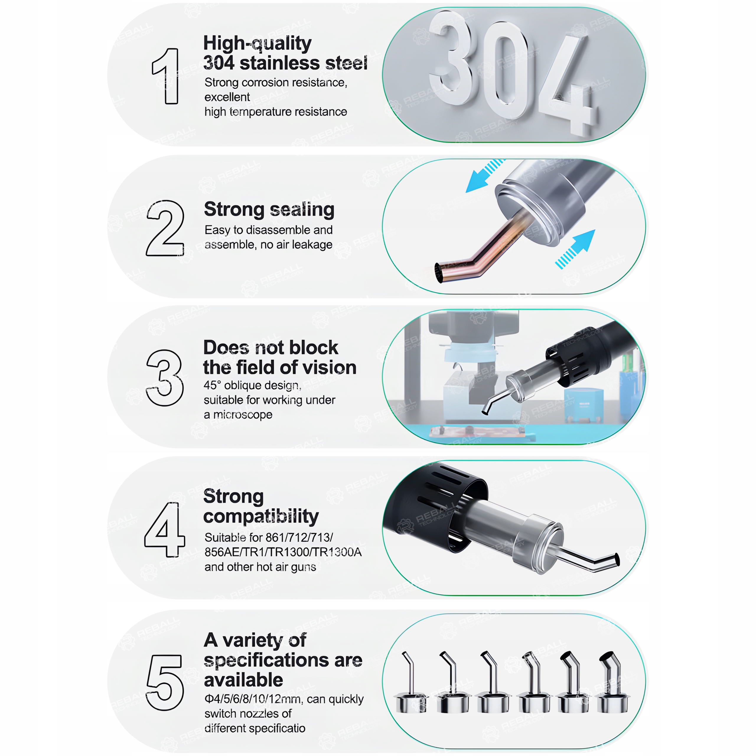 ✅ Zestaw 6 ukośnych dysz do stacji hot-air serii 861.