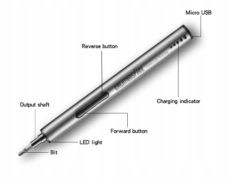 Ultra lekka aluminiowa obudowa w kształcie długopisu ze stopu aluminium o wadze tylko 57,5g to doskonały pomocnik do serwisowania precyzyjnych produktów elektronicznych jak telefony, tablety, laptopy.