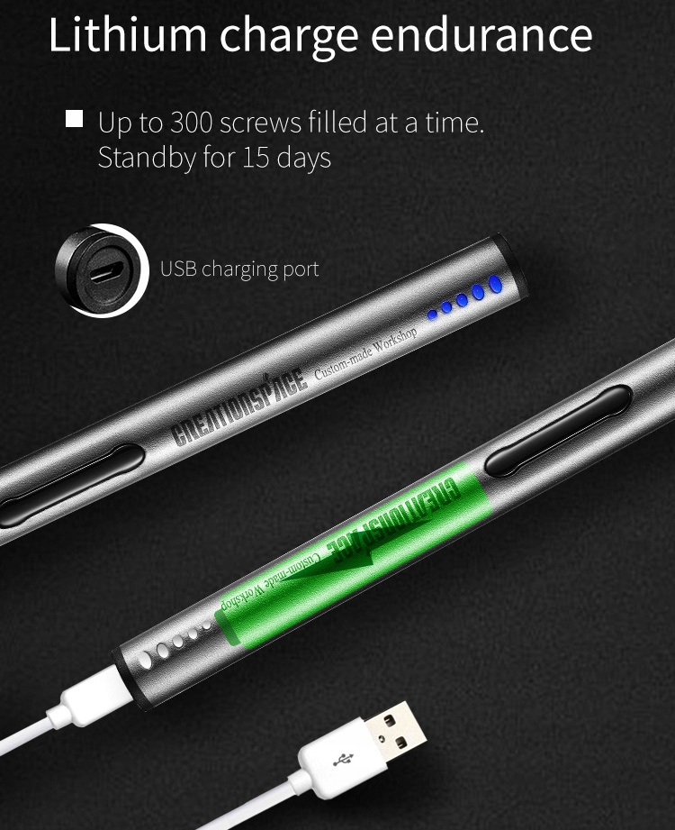Wkrętak zasilany jest wbudowanym akumulatorem Li-Ion 260mAh ładowanym z portu microUSB.