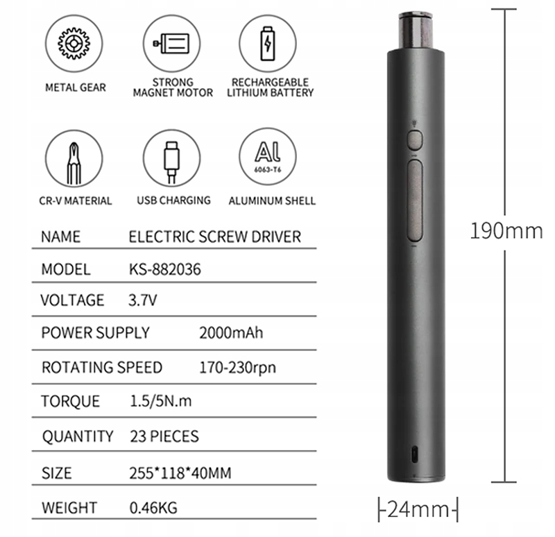 Elektryczna wkrętarka to doskonały pomocnik do serwisowania precyzyjnych produktów elektronicznych jak telefony, tablety, laptopy itp. jak również prowadzenia wszelakich napraw domowych i serwisowych.