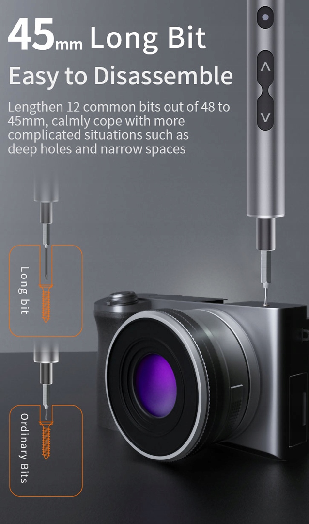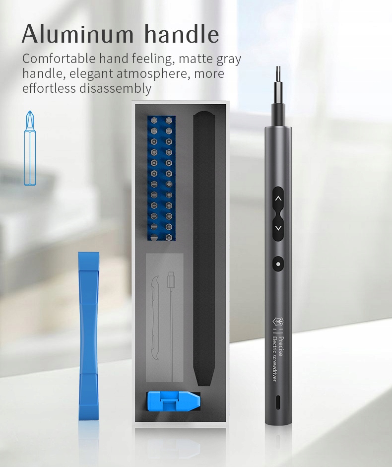 Ultra lekka aluminiowa obudowa w kształcie długopisu ze stopu aluminium o wadze tylko 53g to doskonały pomocnik do serwisowania precyzyjnych produktów elektronicznych jak telefony, tablety, laptopy.