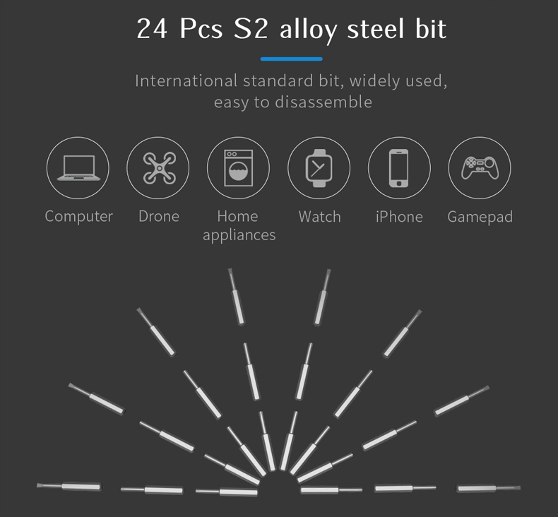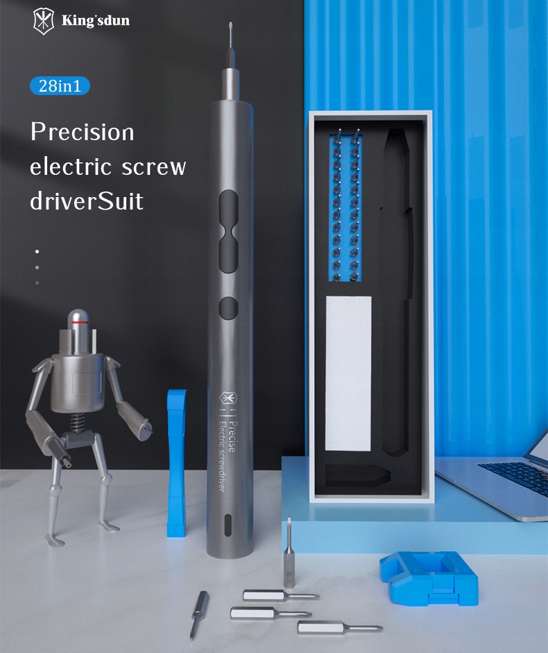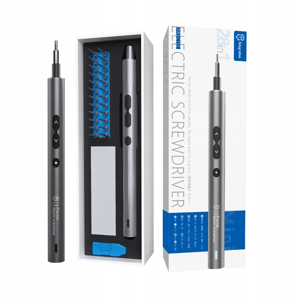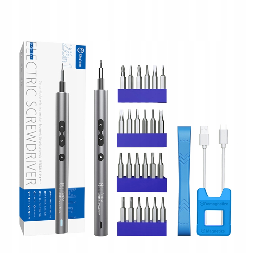 Niezawodny bezprzewodowy wkrętak KING'SDUN KS-882037 zasilany akumulatorem 350mAh 3,7V oraz 24 bitami wykonanymi ze stali S2, magnetyzerem, otwierakiem obudów oraz praktycznym opakowaniem.
