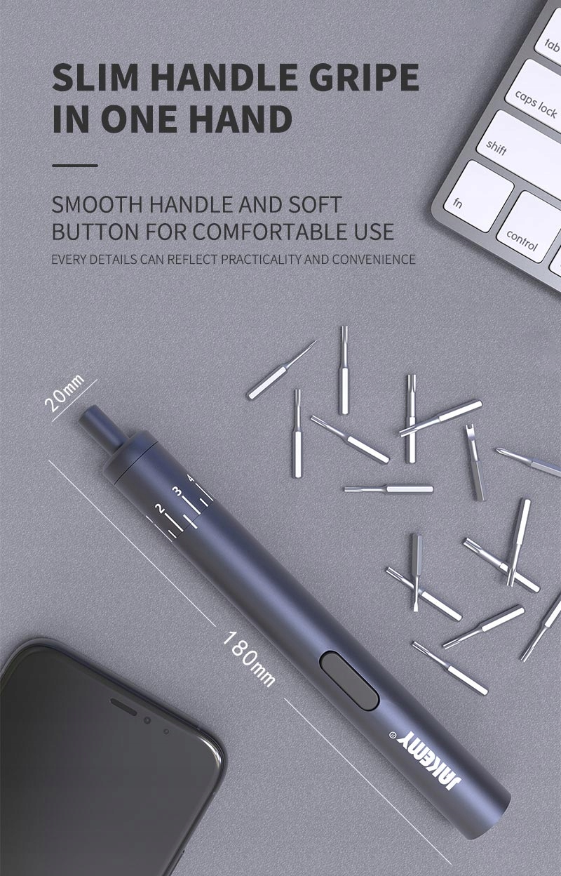 Niezawodny bezprzewodowy wkrętak Jakemy YM-02 Plus ze sprzęgłem, wydajnym wbudowanym akumulatorem 800mAh oraz 14 bitami.