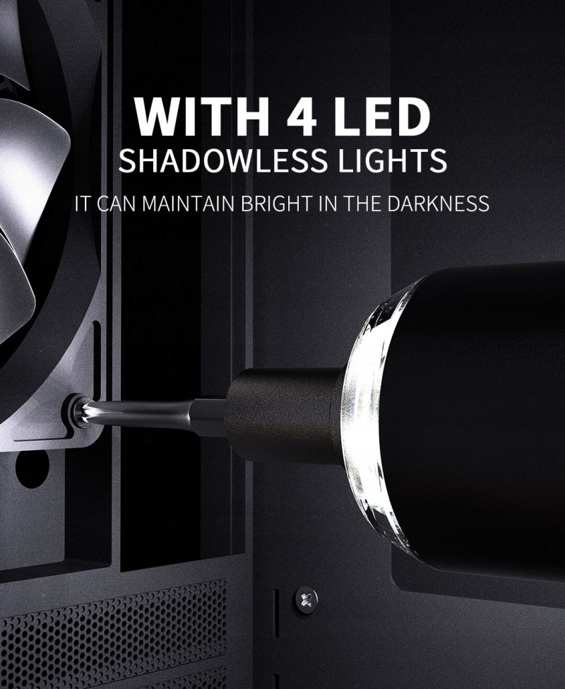Cienka lekka obudowa w kształcie długopisu ze stopu aluminium o wadze 100g z akumulatorem to doskonały pomocnik do serwisowania precyzyjnych produktów elektronicznych jak telefony, tablety, laptopy.