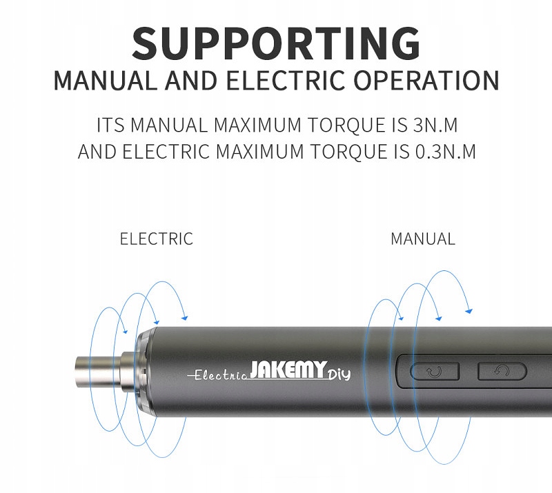 W przypadku braku zasilania może służyć jako klasyczny wkrętak z momentem obrotowym 3N.M!