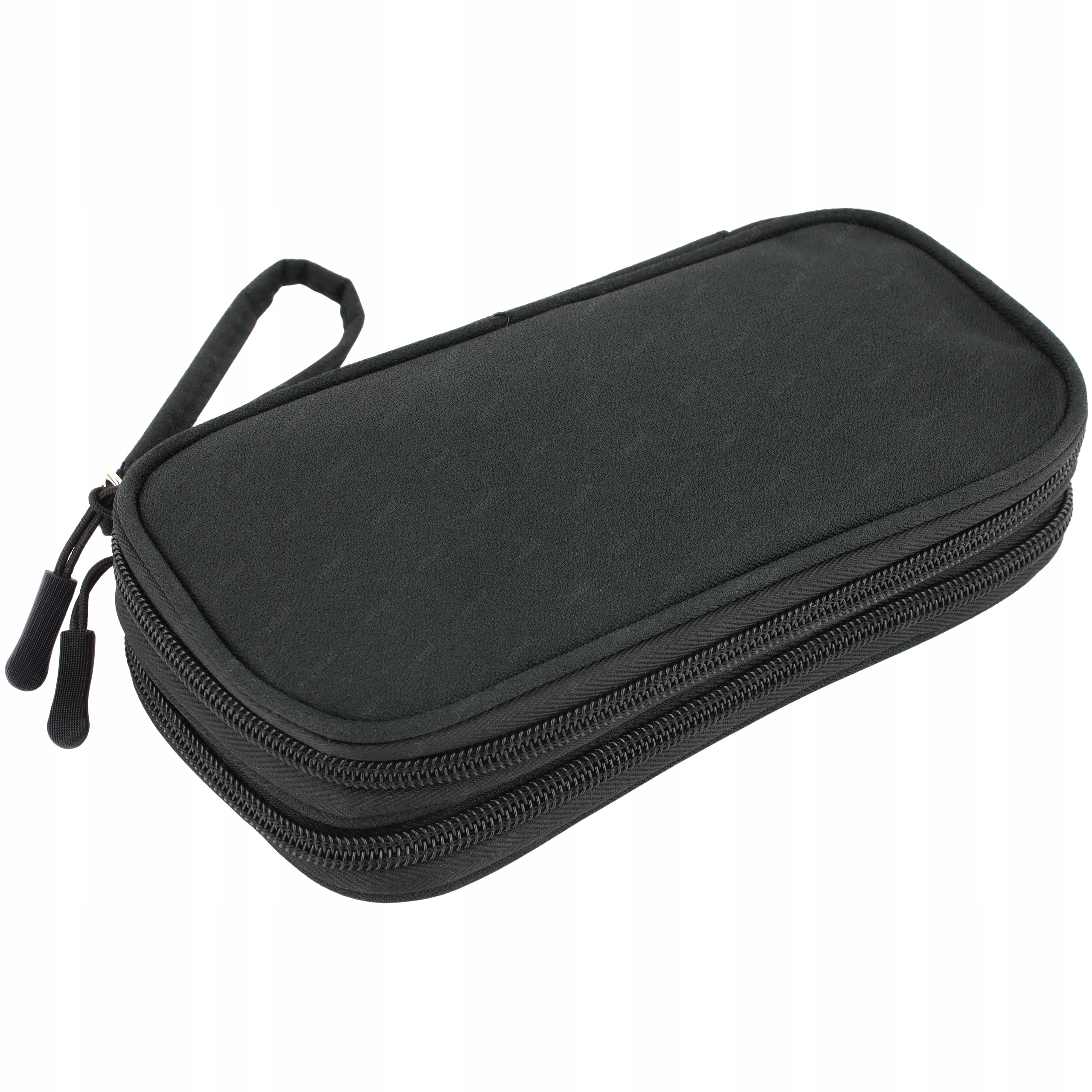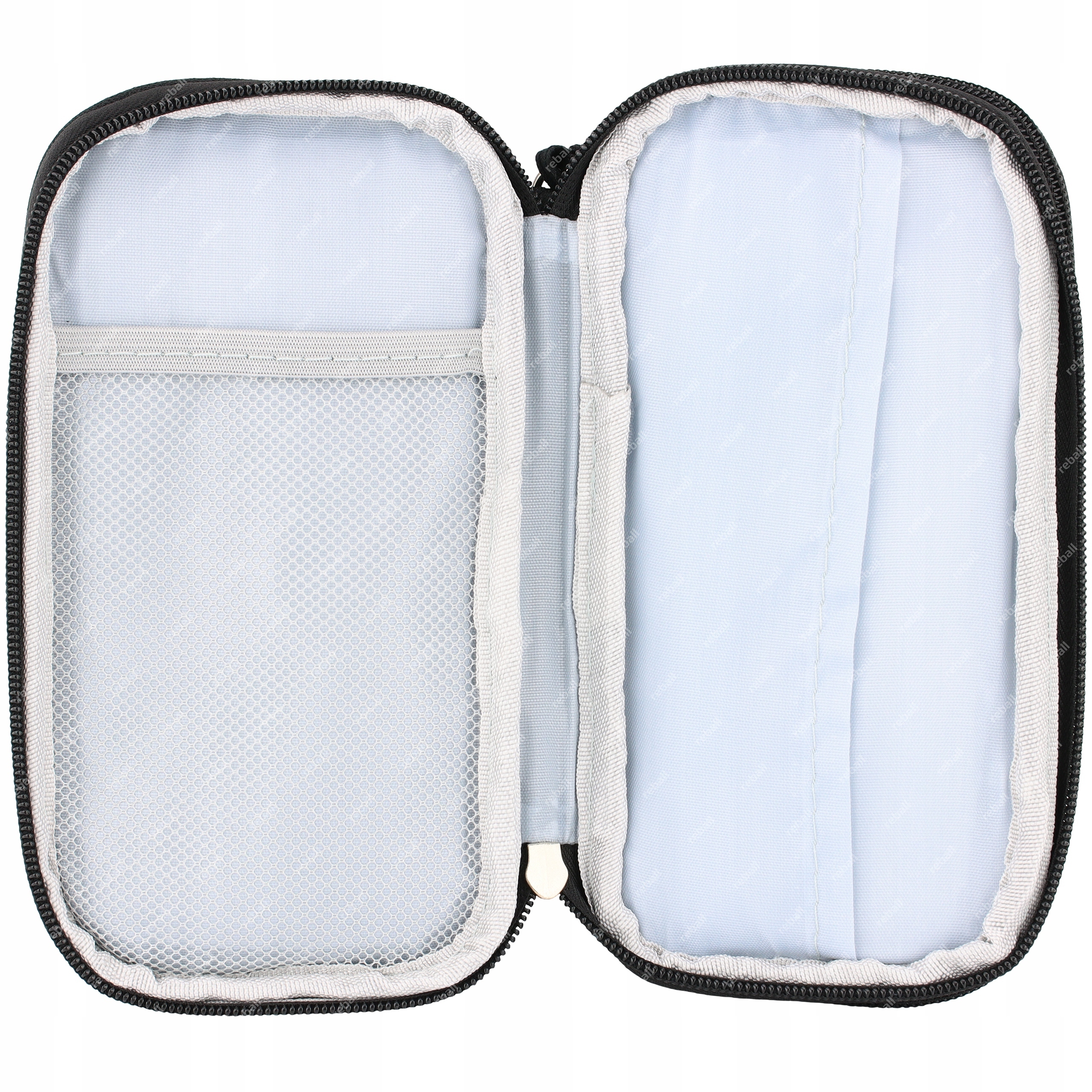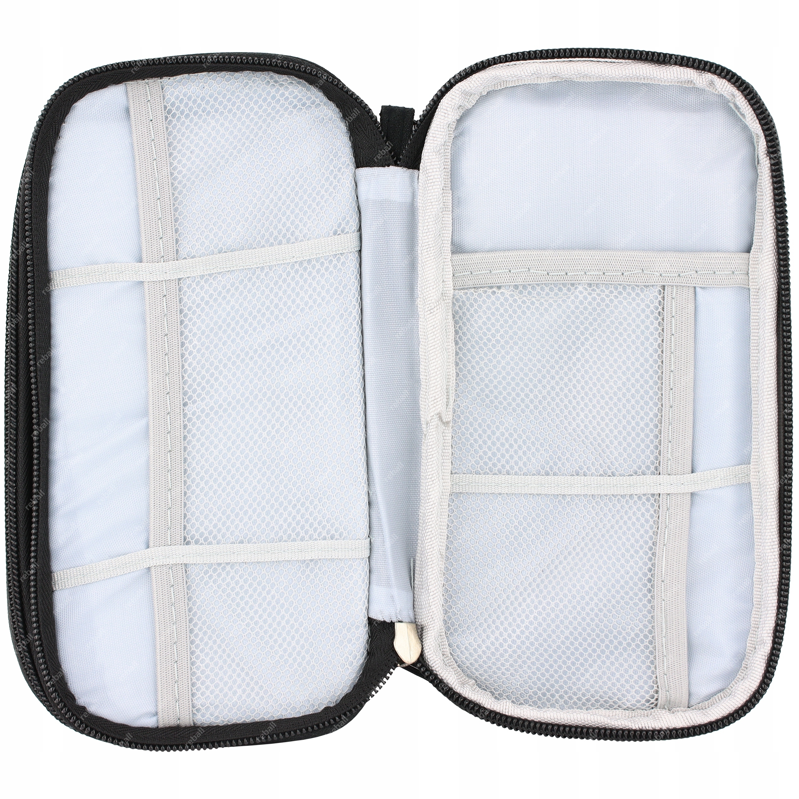Etui posiada kompaktowe rozmiary, które ułatwiają przenoszenie i przechowywanie. Solidny zamek błyskawiczny, zapewnia bezpieczne zamknięcie i łatwe otwieranie. Etui posiada materiałową rączkę umożliwiającą jej zawieszenie.