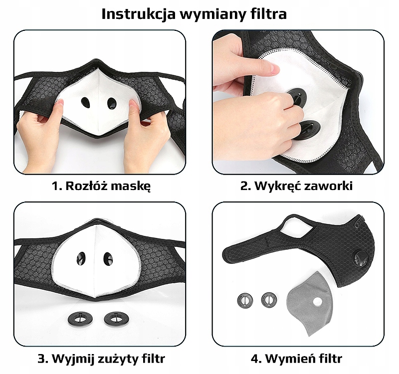 Tego typu maski z filtrami idealnie sprawdzają się do uprawiania sportów na świeżym powietrzu takich jak bieganie, jazda na rowerze, jazda na nartach, jazda konno jak również podczas spacerów, nordic walking czy codziennego użytkowania.