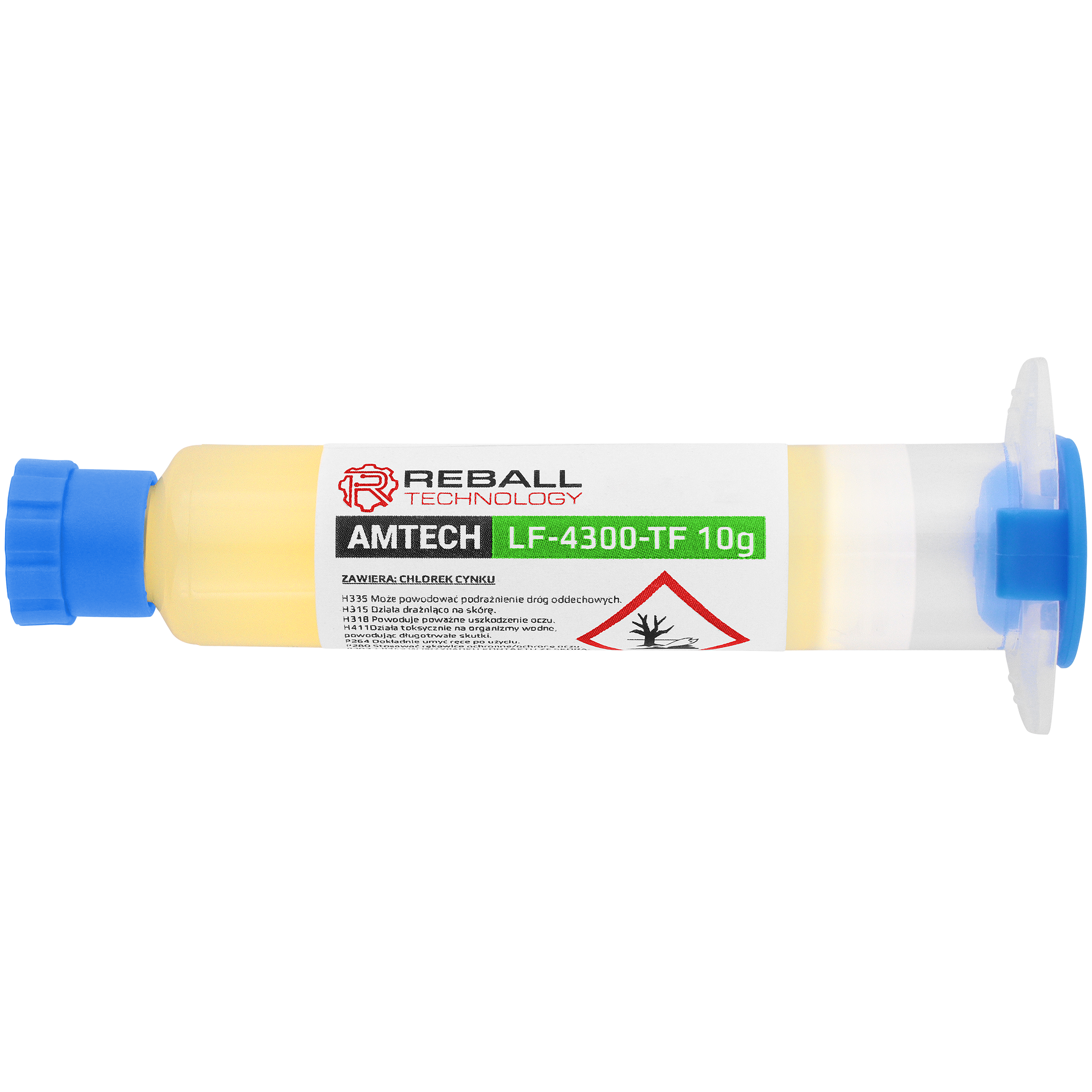 Topnik lutowniczy AMTECH LF-4300-TF w strzykawce 10 g to wysoko wydajny preparat przeznaczony do prac reballingowych, BGA, SMD i ogólnego lutowania na płytkach PCB.