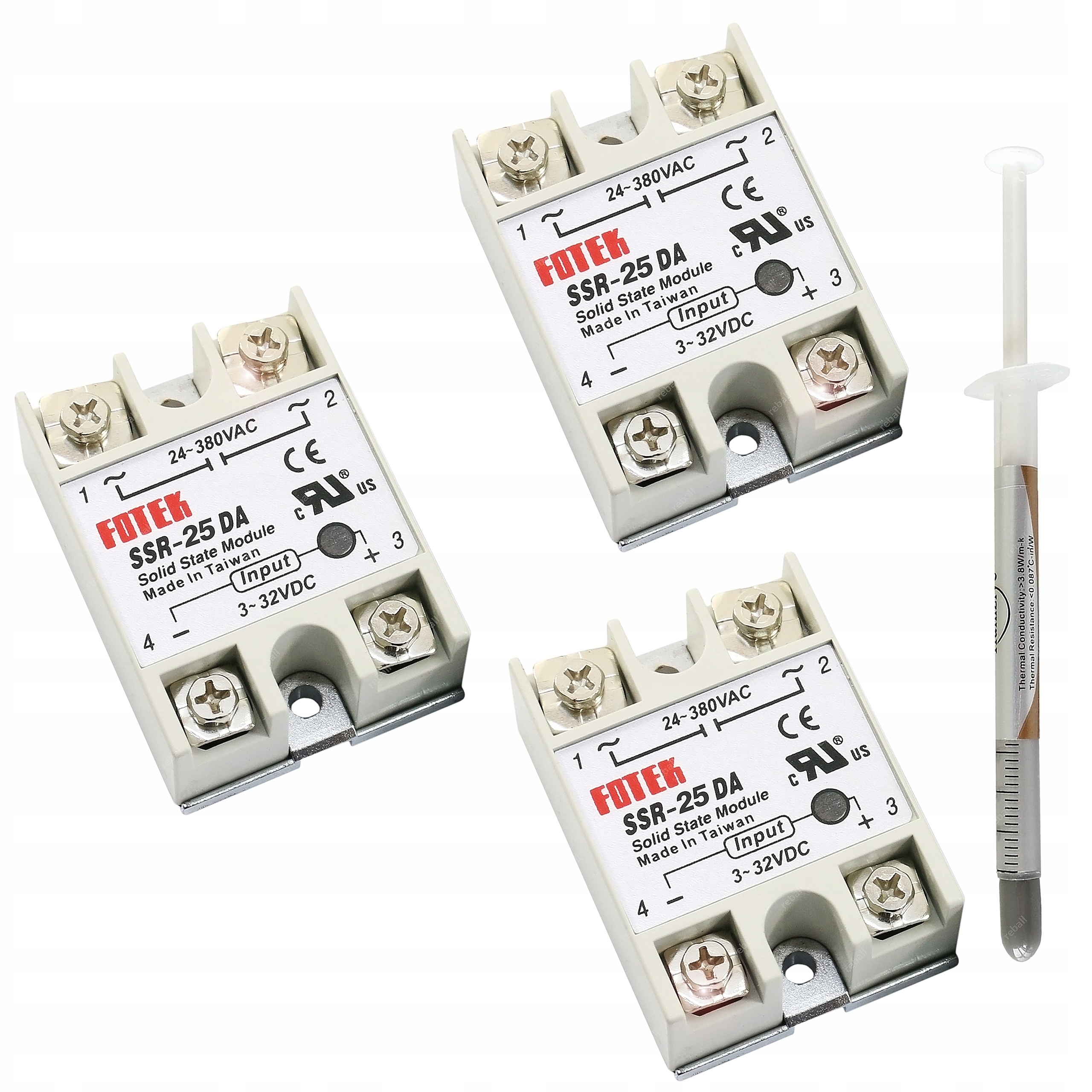 PRZEKAŹNIK SSR-25DA 25A DC-AC FOTEK ZESTAW 3szt. + PASTA TERMOPRZEWODZĄCA