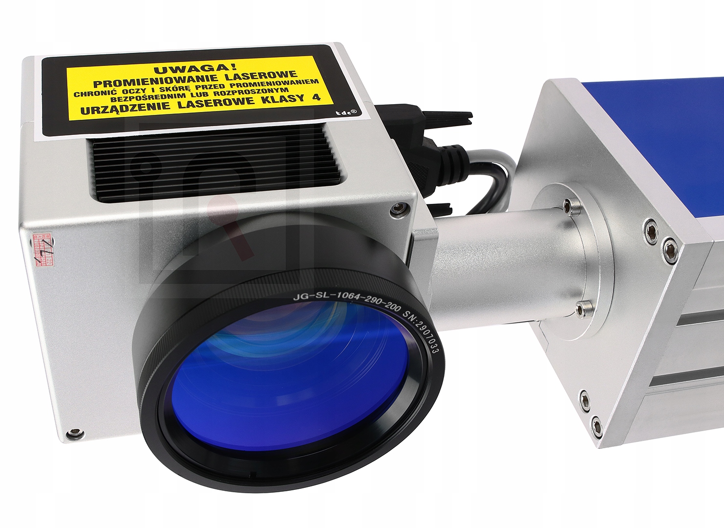 Nie patrz bezpośrednio na głowicę wyjściową. Unikaj bezpośredniego kontaktu oraz chroń oczy i skórę przed rozproszonym promieniowaniem laserowym.