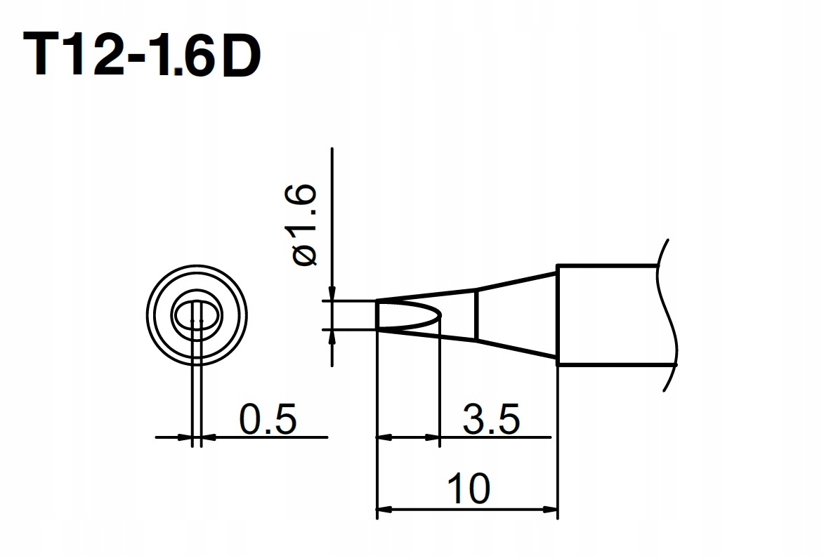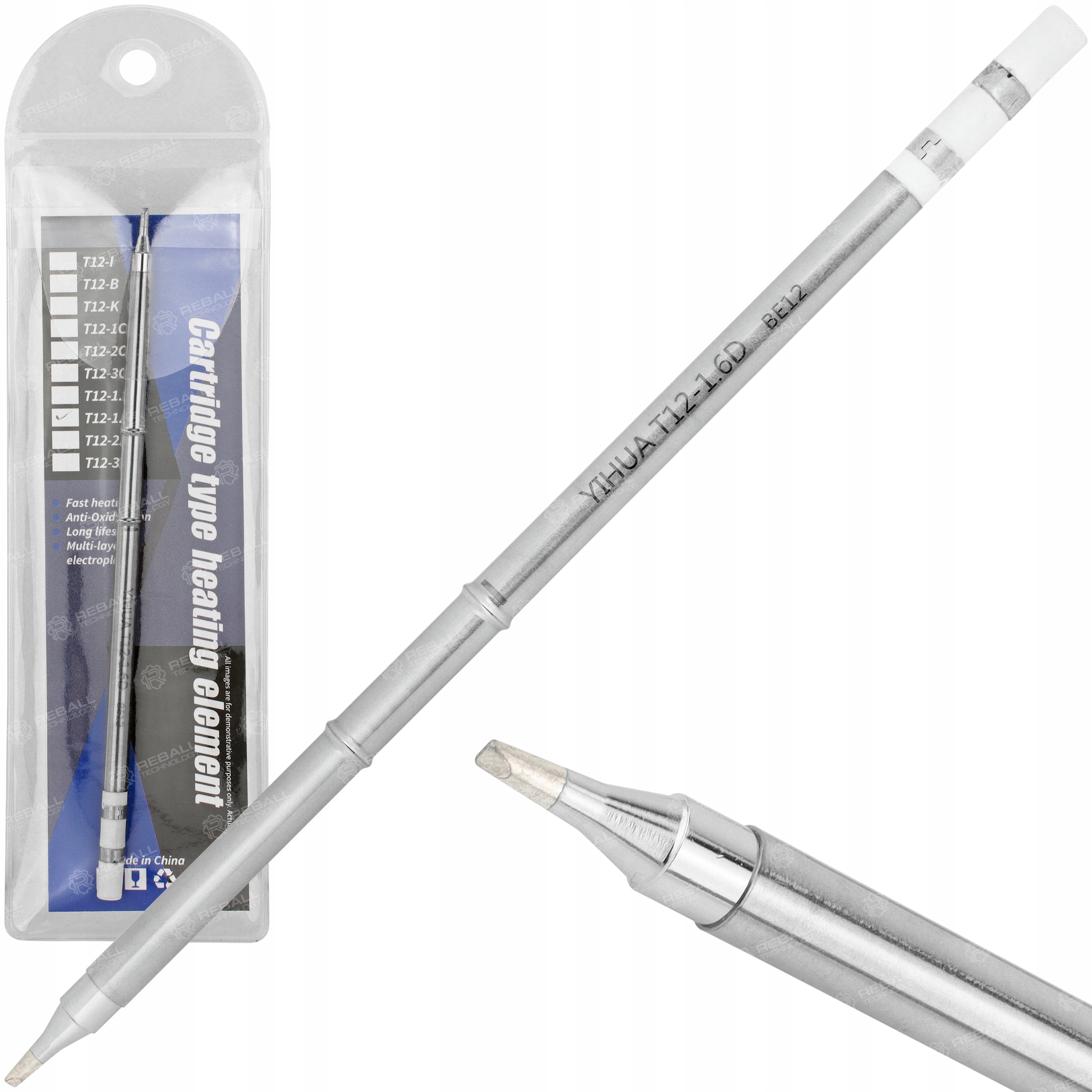 Grot z grzałką T12-1.6D (T12-D16) to precyzyjna końcówka lutownicza o szerokości 1,6 mm, zaprojektowana do szybkiego i stabilnego lutowania elementów elektronicznych.
